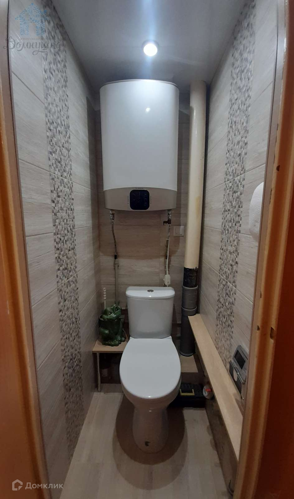 В санузле современная плитка и сантехника. Установлен бойлер.