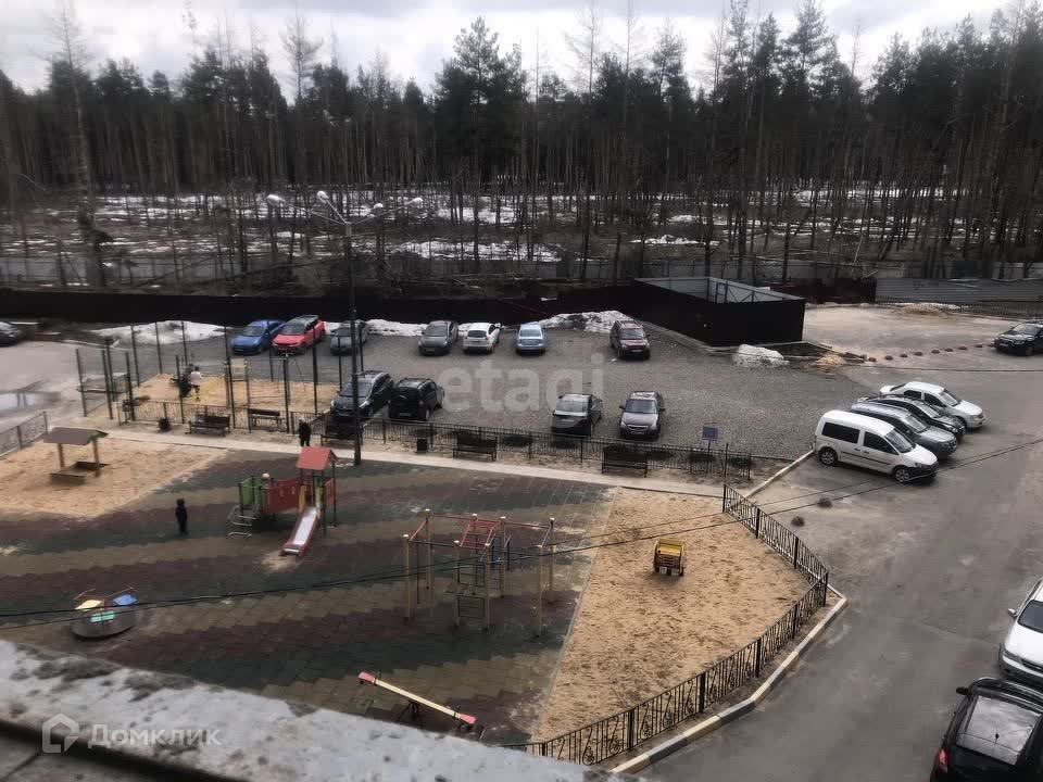 Окна выходят во двор с видом на лес, свежий воздух обеспечен.