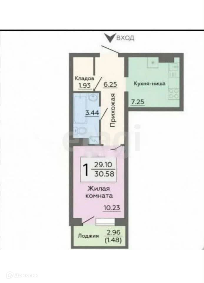 Общая площадь 30.6 м2