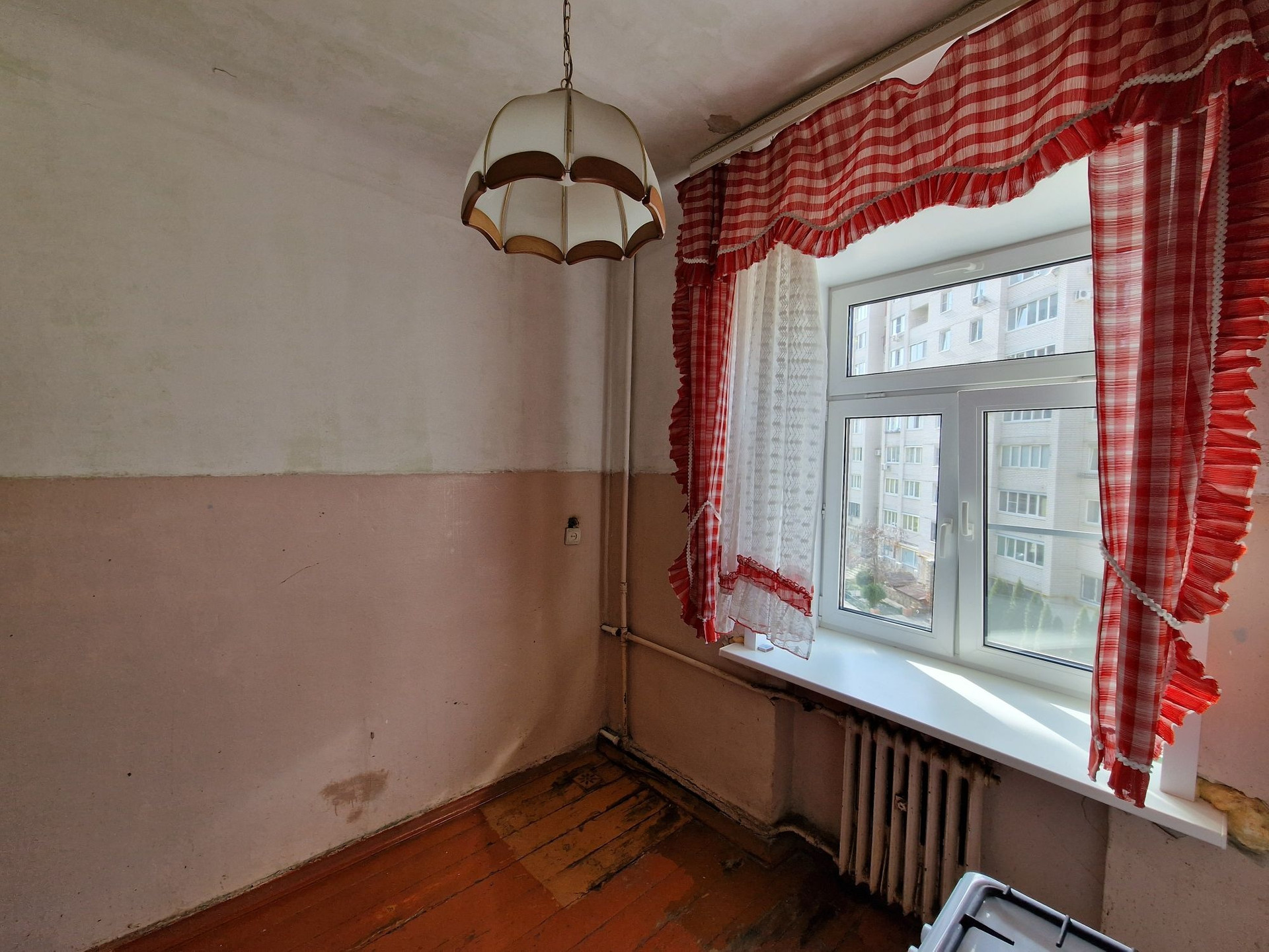 - окна пластиковые, радиаторы новые, газовая колонка новая автомат, водопроводные трубы пластик, лоджия не отделана.