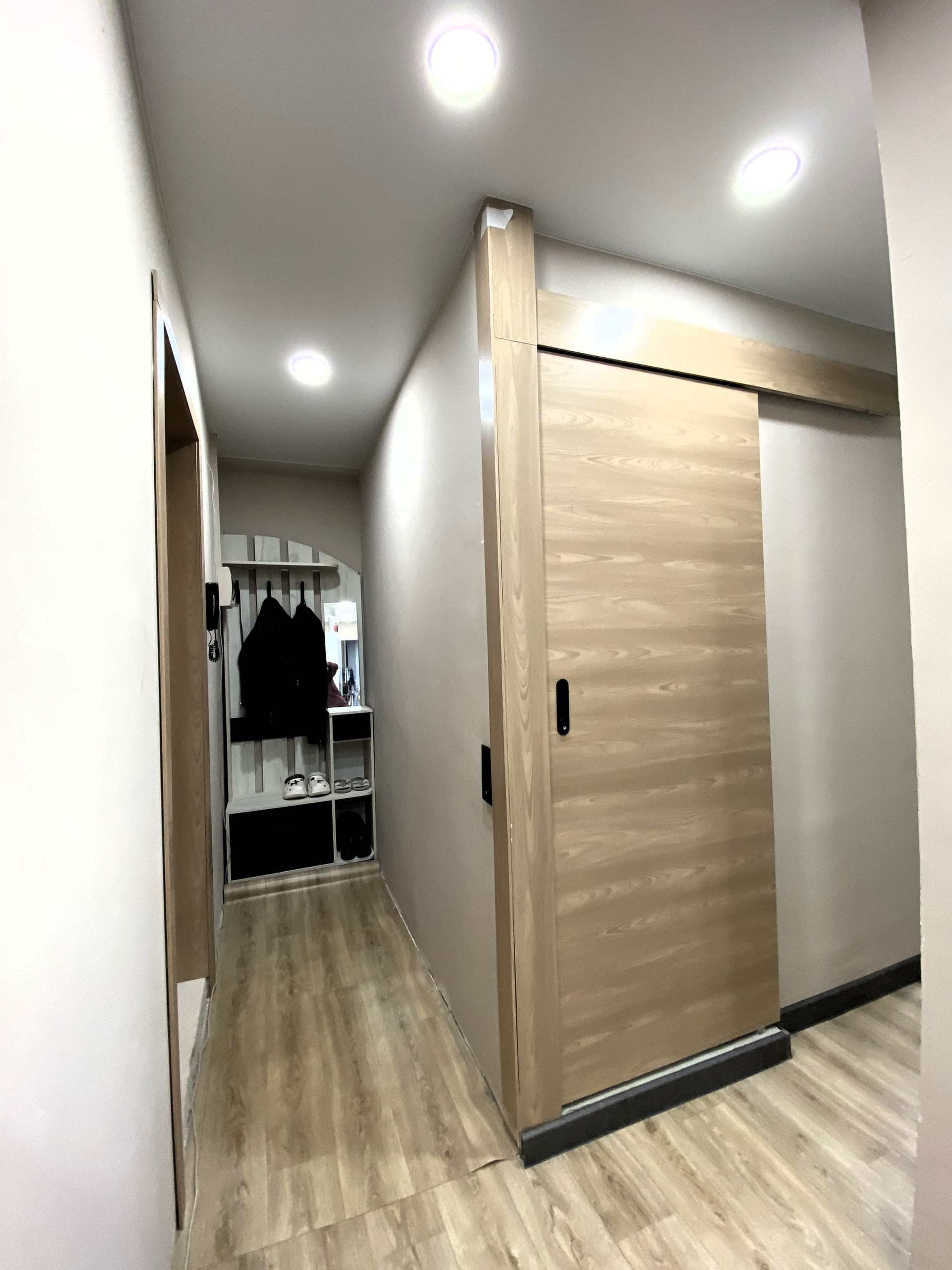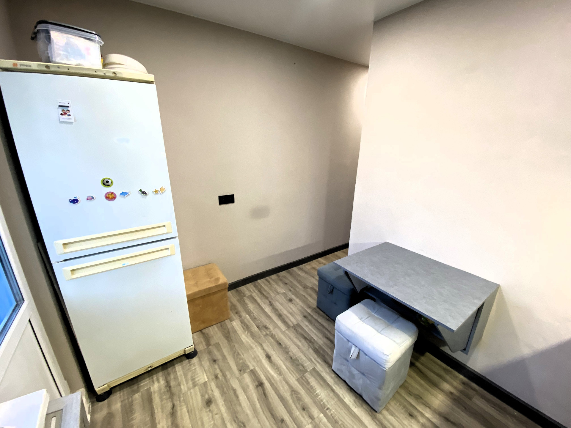 Новая стяжка пола, стены выровнены гипсокартонном.