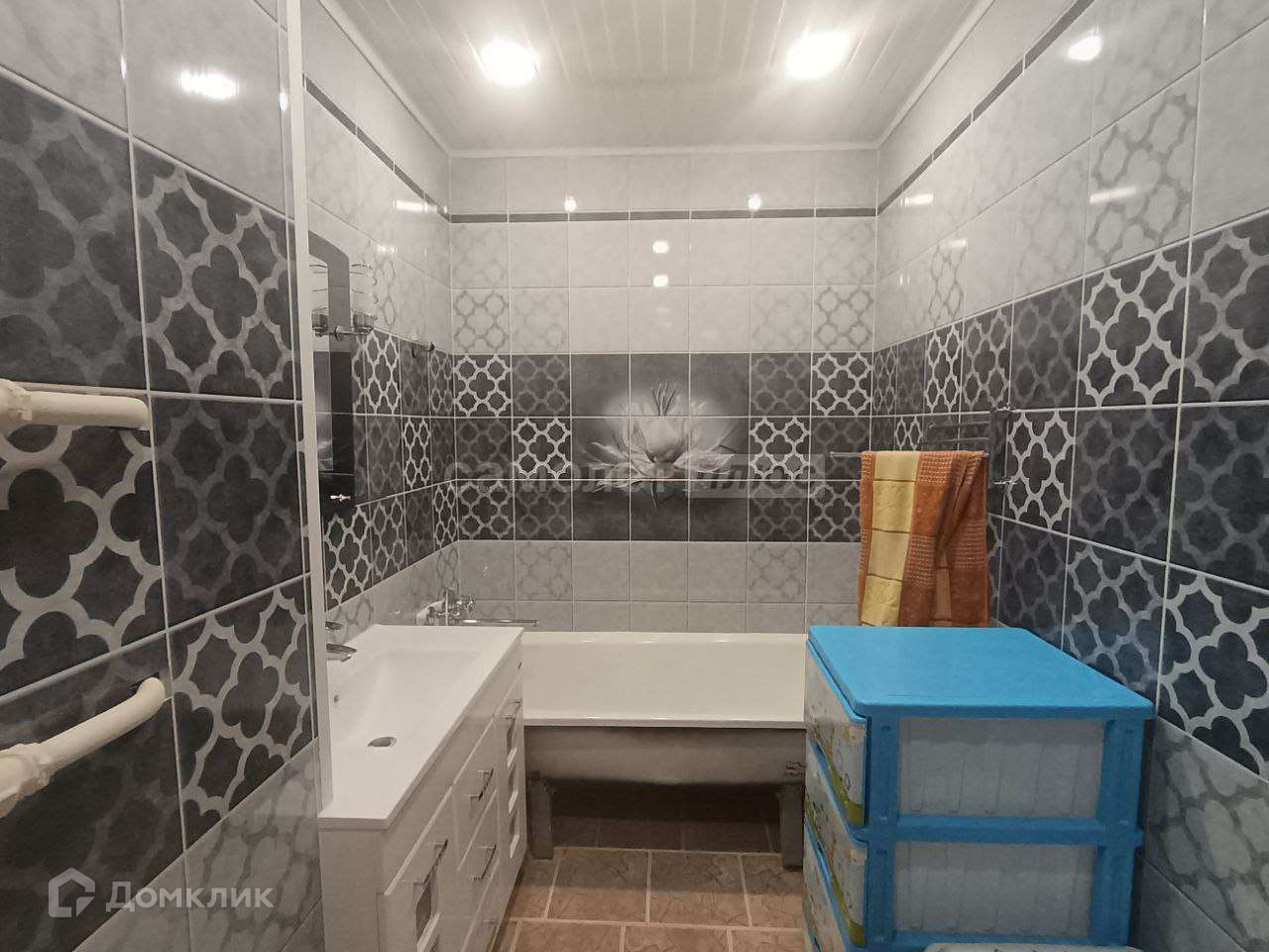 Санузел раздельный в кафеле до потолка;
