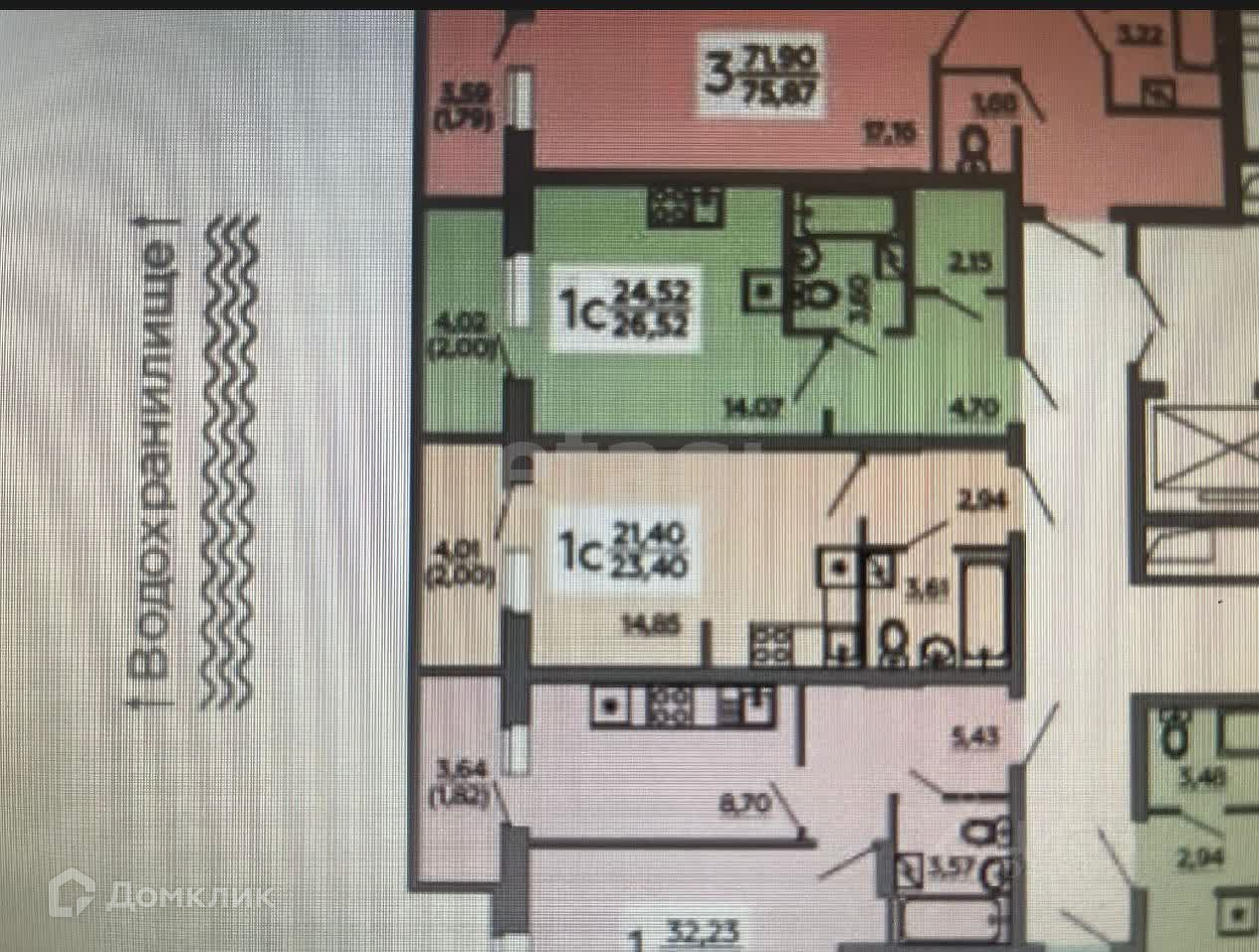 Общая площадь 23.4 м2