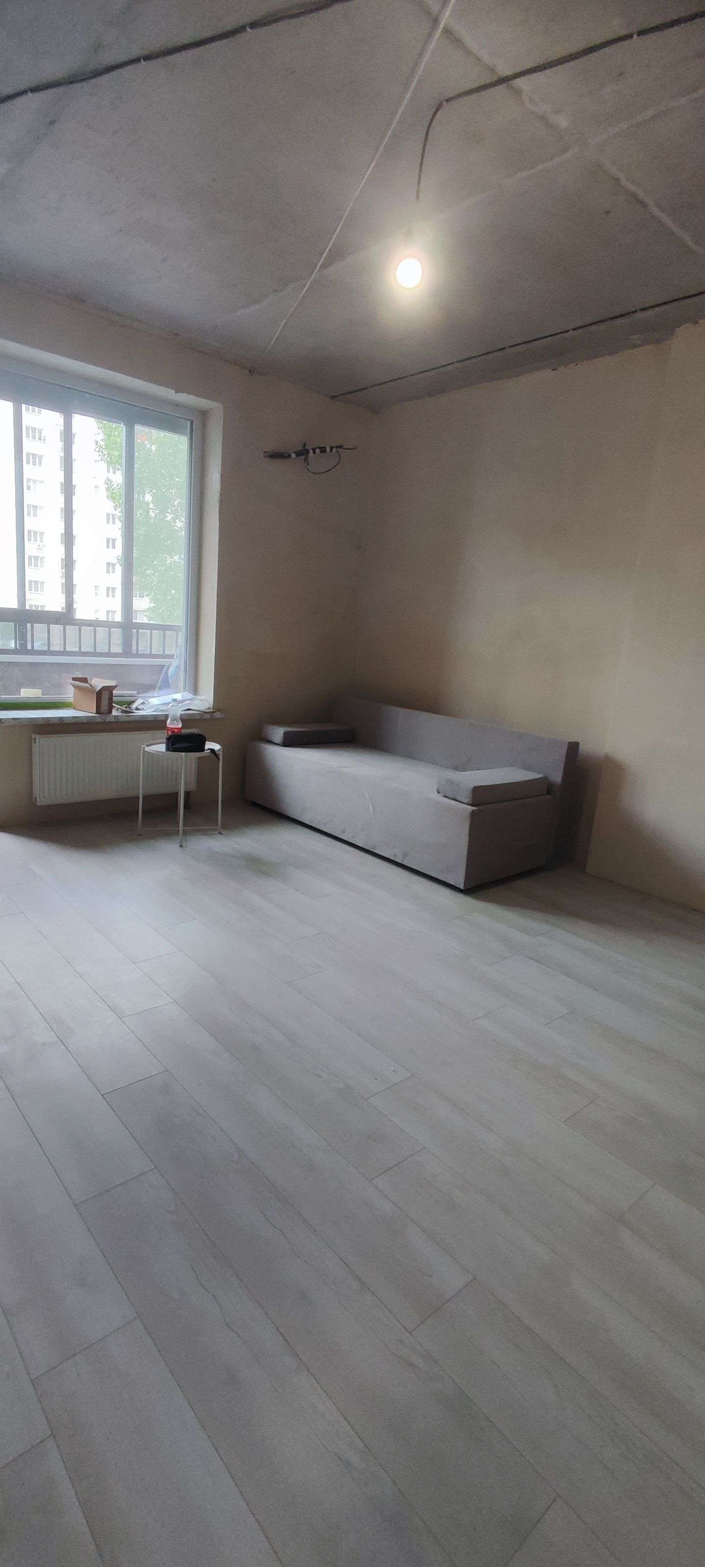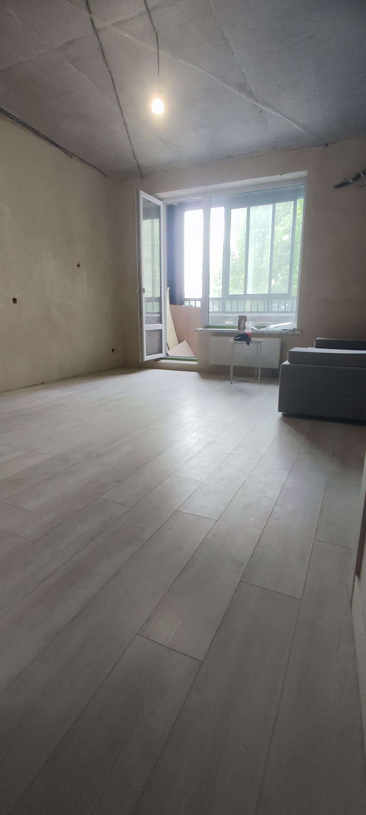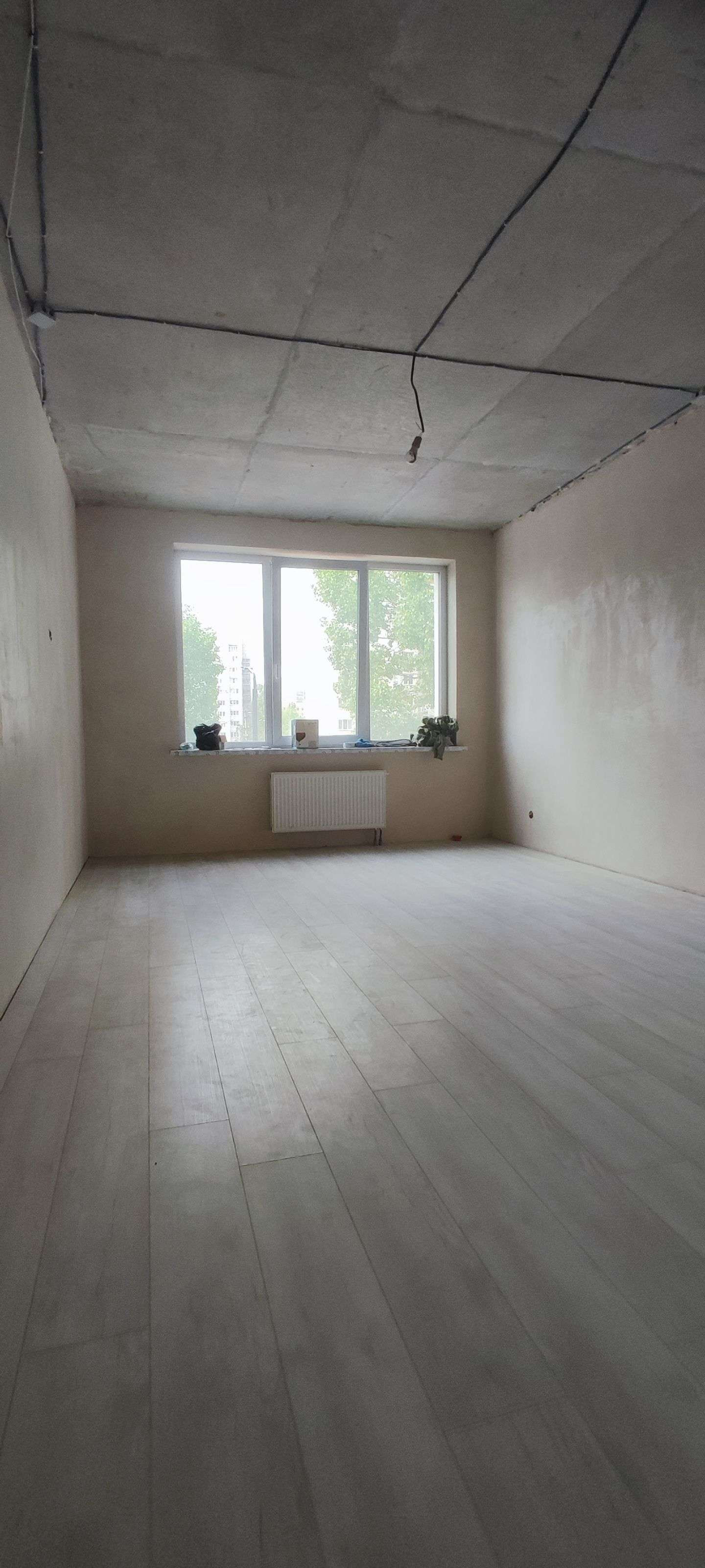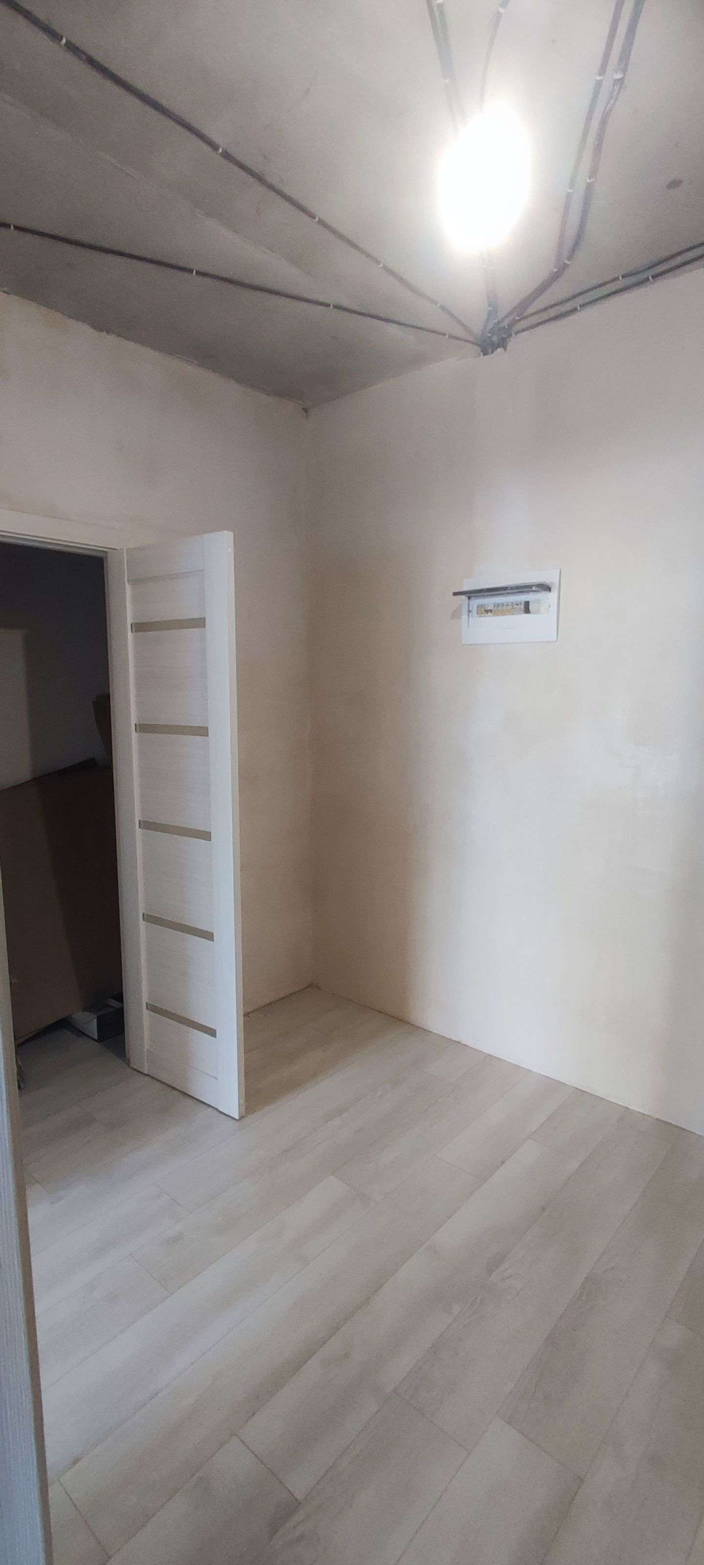 Во всех комнатах постелен ламинат, подготовлены стены под обои, установлены двери, заложена трасса под кондиционер, разведена электрика, вода, и канализация.