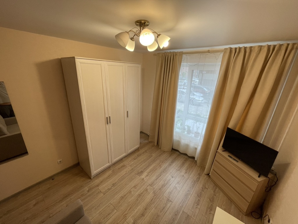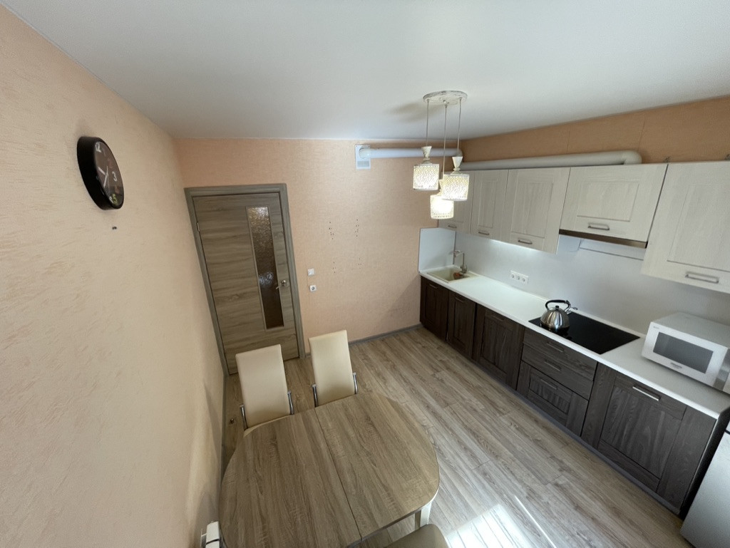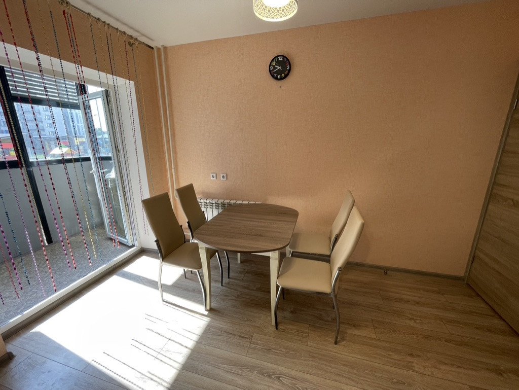 Жилая площадь составляет 28.6 квадратных метров, а кухня занимает 11.6 квадратных метров. В квартире выполнен качественный евроремонт, что позволит новым владельцам сразу заселиться без дополнительных вложений. Санузел раздельный, что добавляет комфорта при использовании. Из окон открывается вид на благоустроенный двор, где расположены детская и спортивная площадки.
