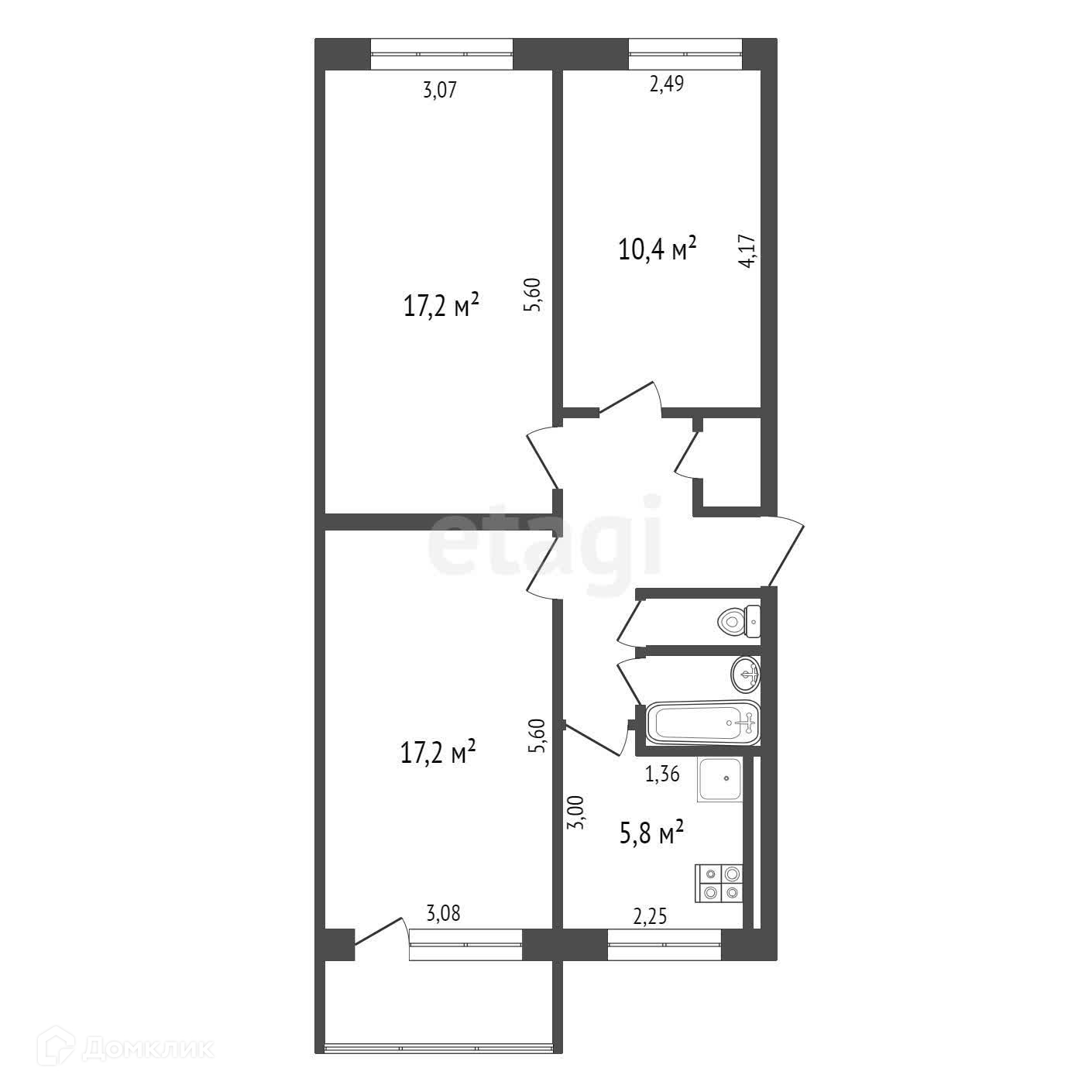 Общая площадь 61.6 м2