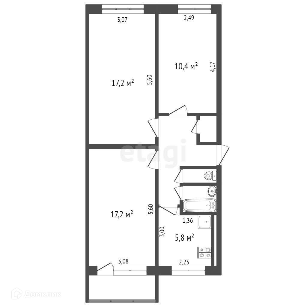 Продаётся уютная трехкомнатная квартира площадью 61 квадратный метр. Внутри квартиры имеются две просторные комнаты размером 17 квадратных метров каждая и одна комната площадью 10 квадратных метров. Все комнаты раздельные. Сан. узел раздельный, что обеспечивает комфорт и удобство для всей семьи. Кухня имеет площадь 6 квадратных метров, в которой можно уютно приготовить еду и провести время с семьей.