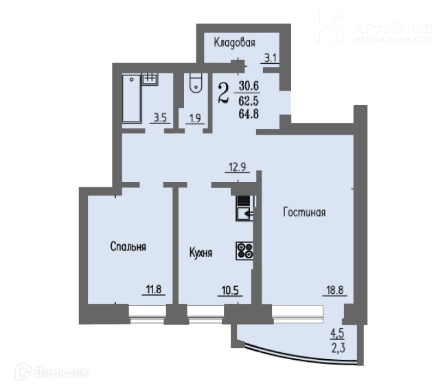 - Кладовая: 3.1 кв.м