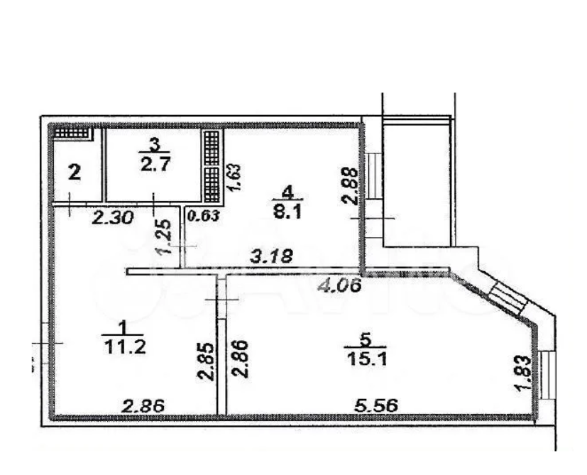 Балкон, лоджия 1 балкон