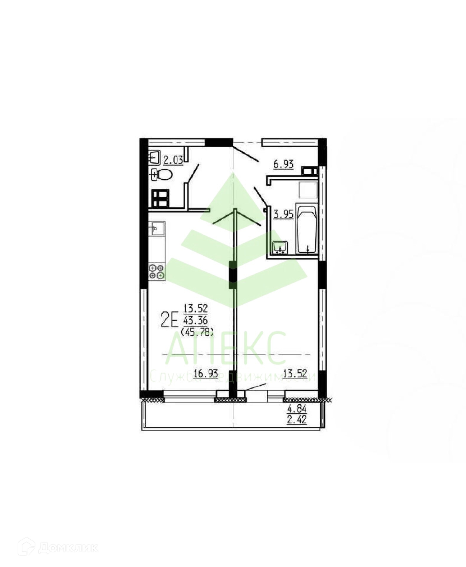 Общая площадь 44.1 м2