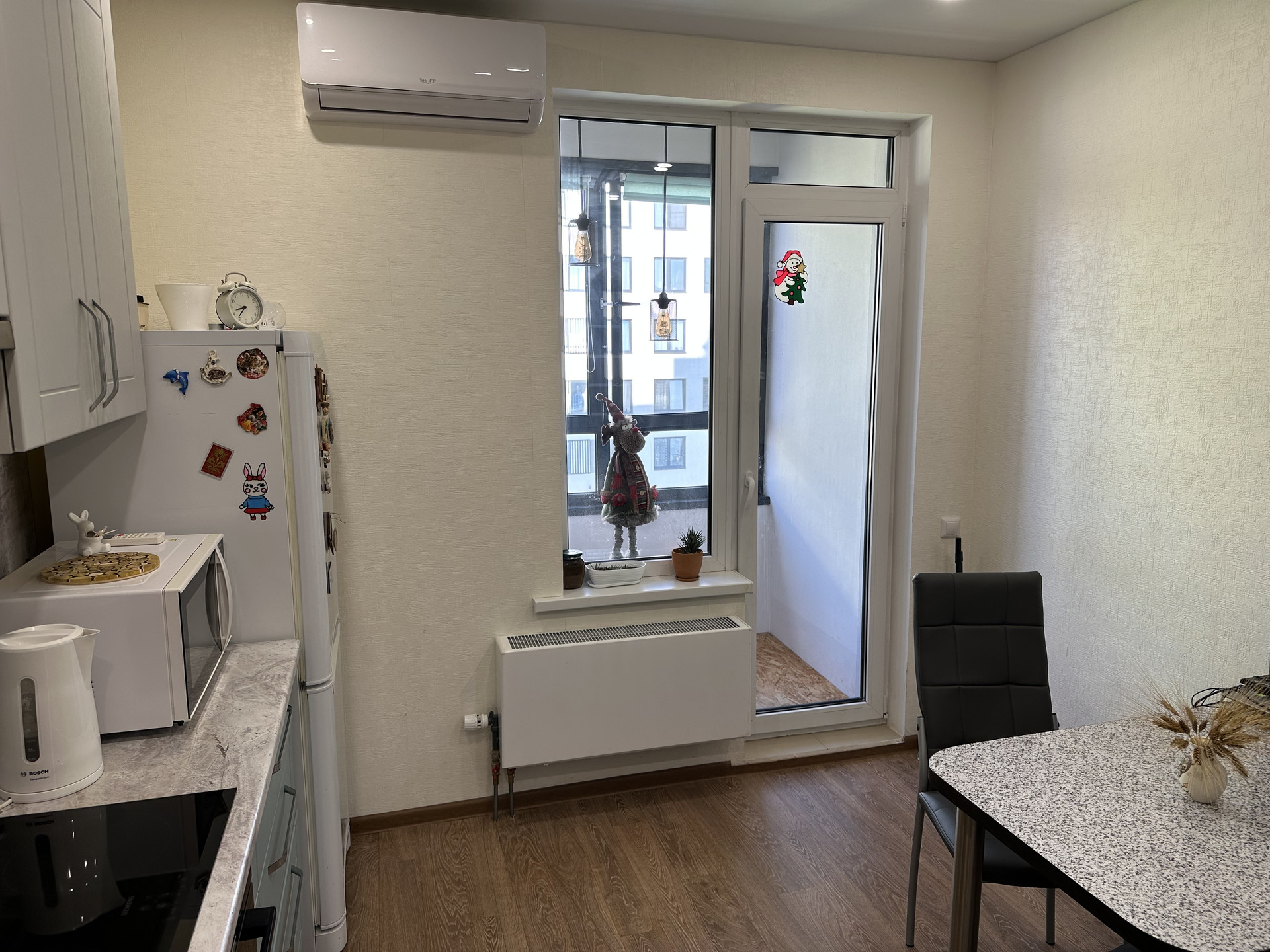 Квартира оборудована сплит-системой на кухне, бытовой техникой и мебелью, большая часть которой останется в собственности будущего покупателя по индивидуальной договорённости.
