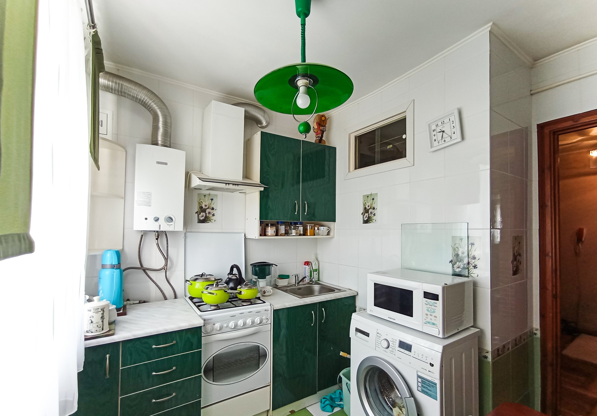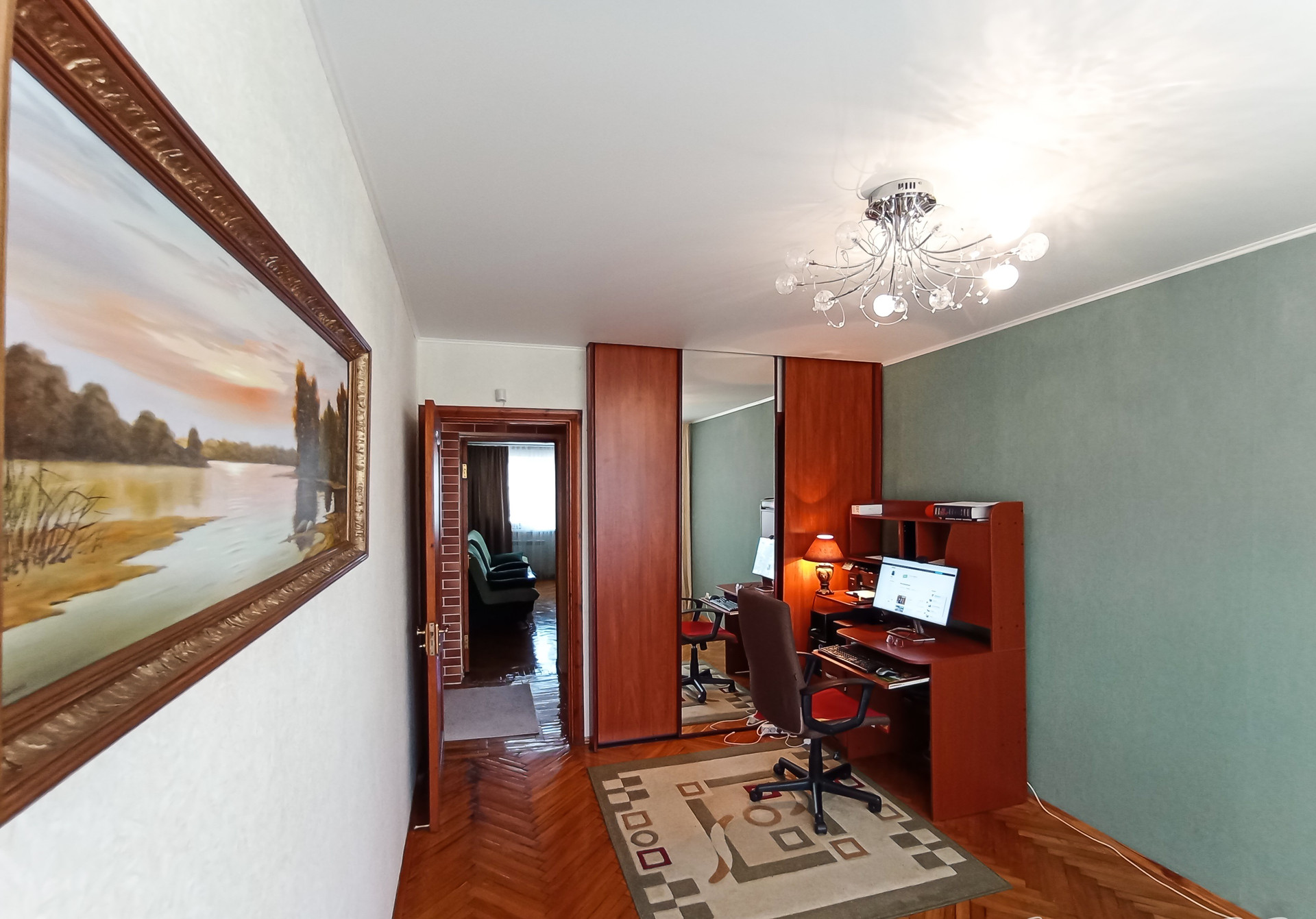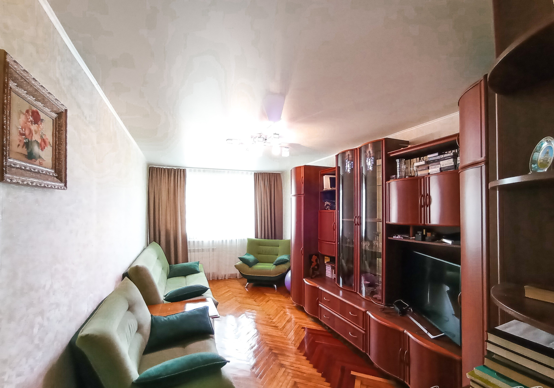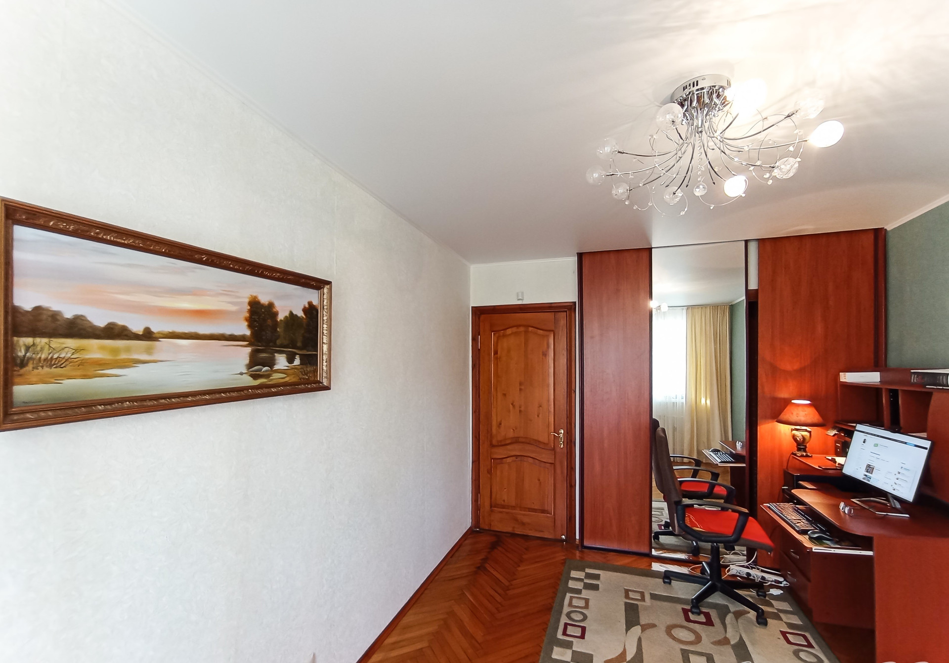 По договорённости остаются: кухня, мягкий уголок, стенка, компьютерный стол, микроволновка, шторы, светильники.