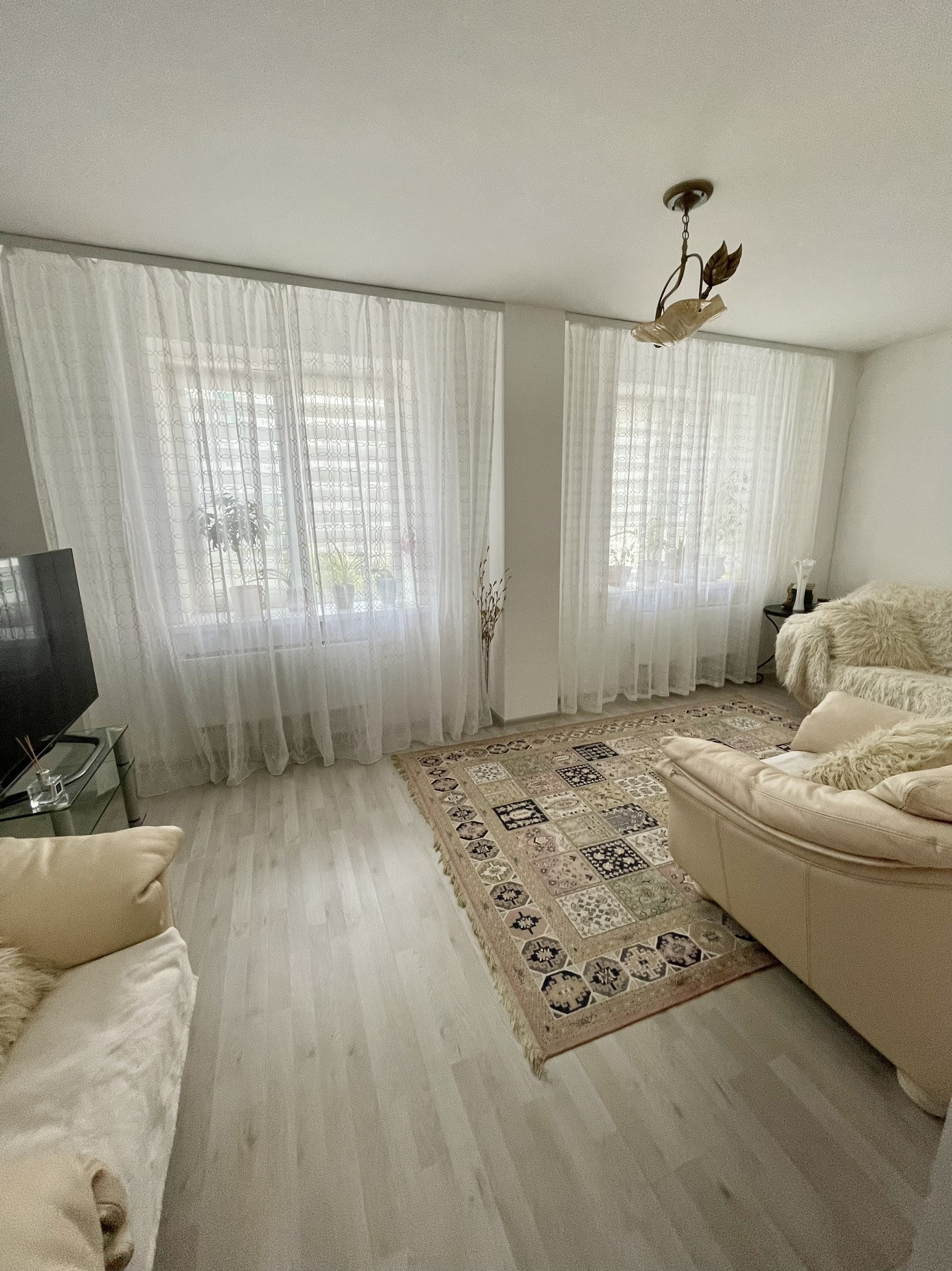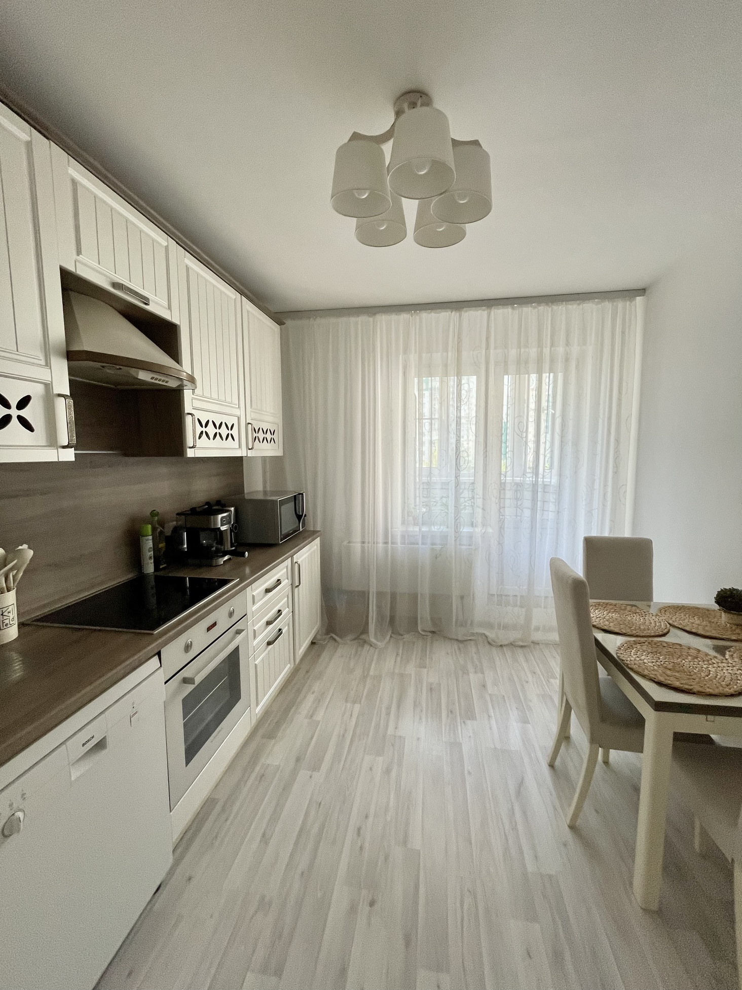 Продается светлая, уютная 2-х комнатная квартира СО ВСЕЙ МЕБЕЛЬЮ И ТЕХНИКОЙ просто «ЗАХОДИ И ЖИВИ» квартира современного типа расположена на 4-м этаже 17-ти этажного дома 2015 года постройки, окна квартиры выходят на обе стороны дома. В комнатах стены и потолок окрашены в один тон, напольное покрытие из ламината. На балконе который выходит из кухни пластиковое остекление. В спальне установлен кондиционер. Вся мебель и техника остаётся новым жильцам (кроме: Холодильника, телевизора и стиральной машины).