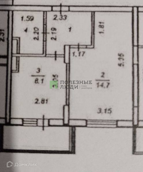Жилая площадь 15.1 м2