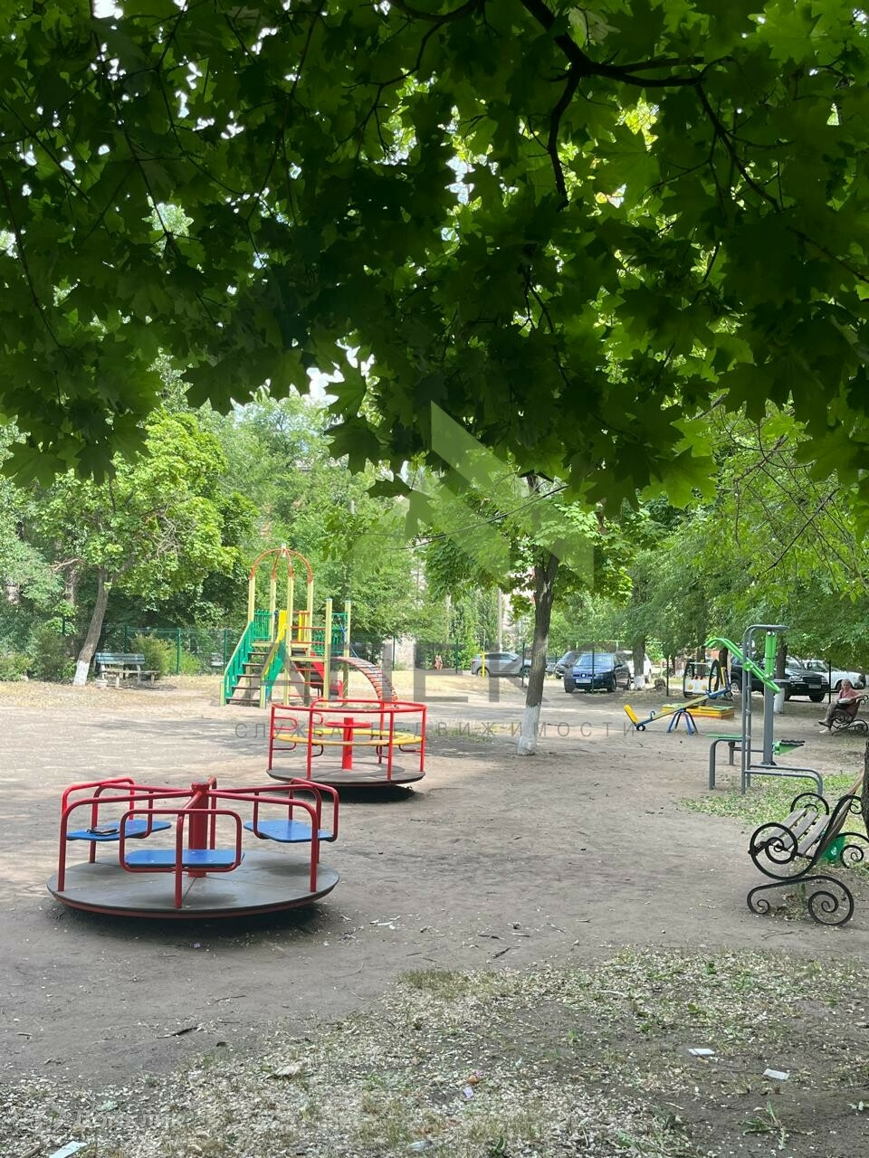 Во дворе закрытая детская площадка ,имеются спортивные снаряды.