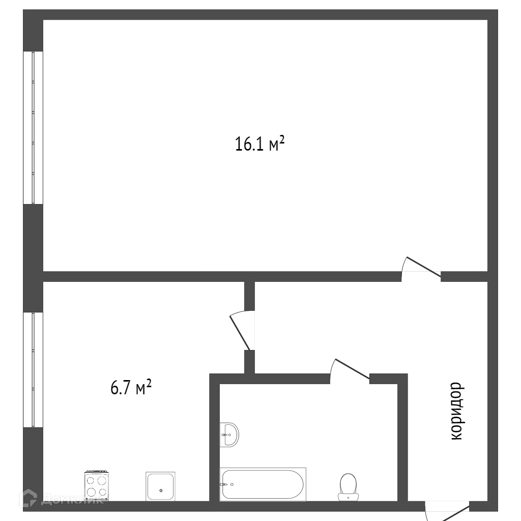 Общая площадь 41.2 м2