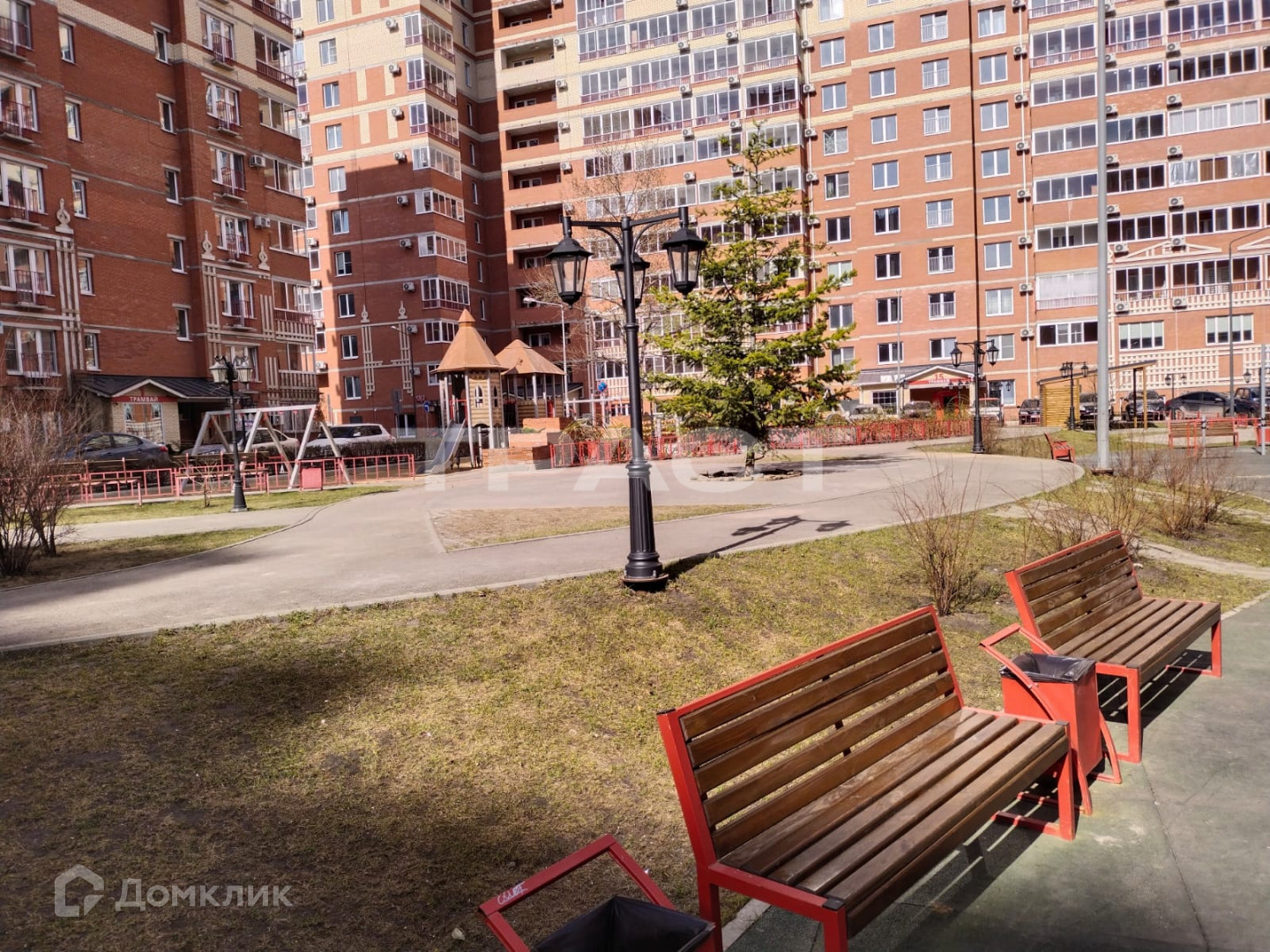 Закрытая территория с видеонаблюдением и охраной, ландшафтное озеленение.