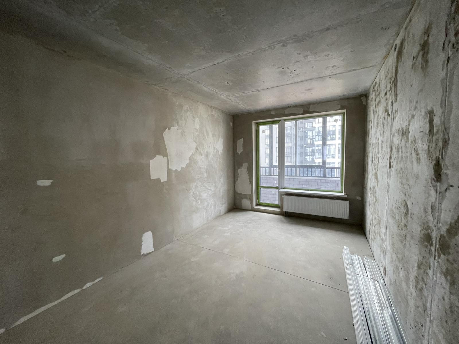 В квартире выполнена качественная стяжка и оштукатурены стены по монолиту.