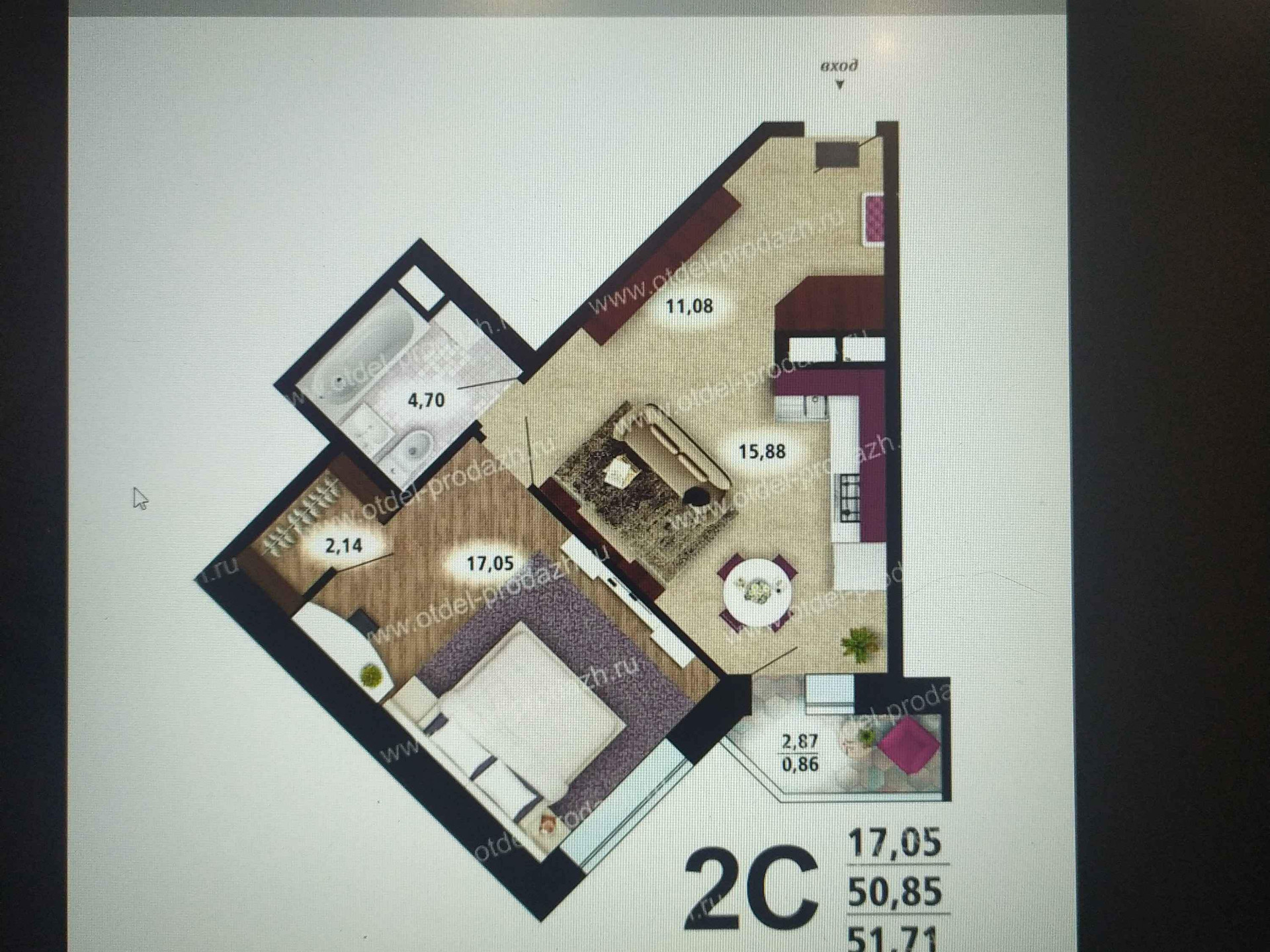Общая площадь 52 м2