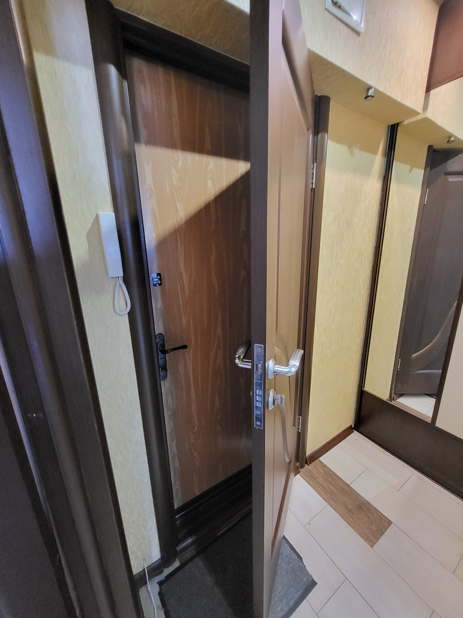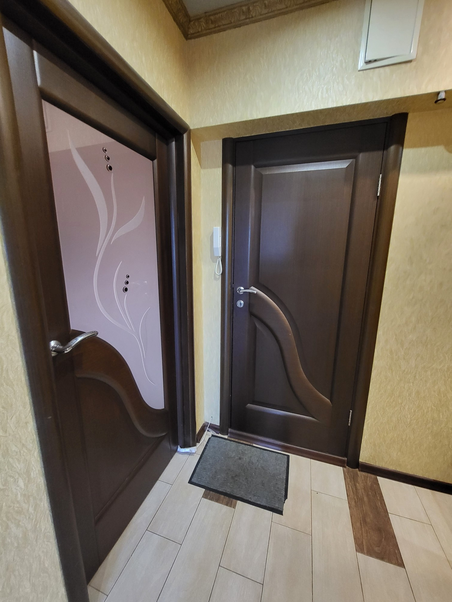 Замечательный этаж, квартира не угловая, всего 4 квартиры на этаже, огромный тамбур на две квартиры с железной дверью.