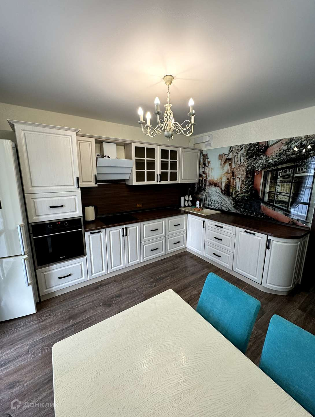 В подарок новым владельцам кухонный гарнитур со встроенной и портативной техникой, обеденная группа, мягкая мебель, оборудованные зоны хранения, сплит-система.