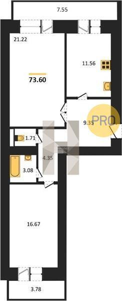 2-комнатная квартира, 74.8 м2, этаж 11 / 16, на продажу в Воронеже, переулок Здоровья, 90Г/1