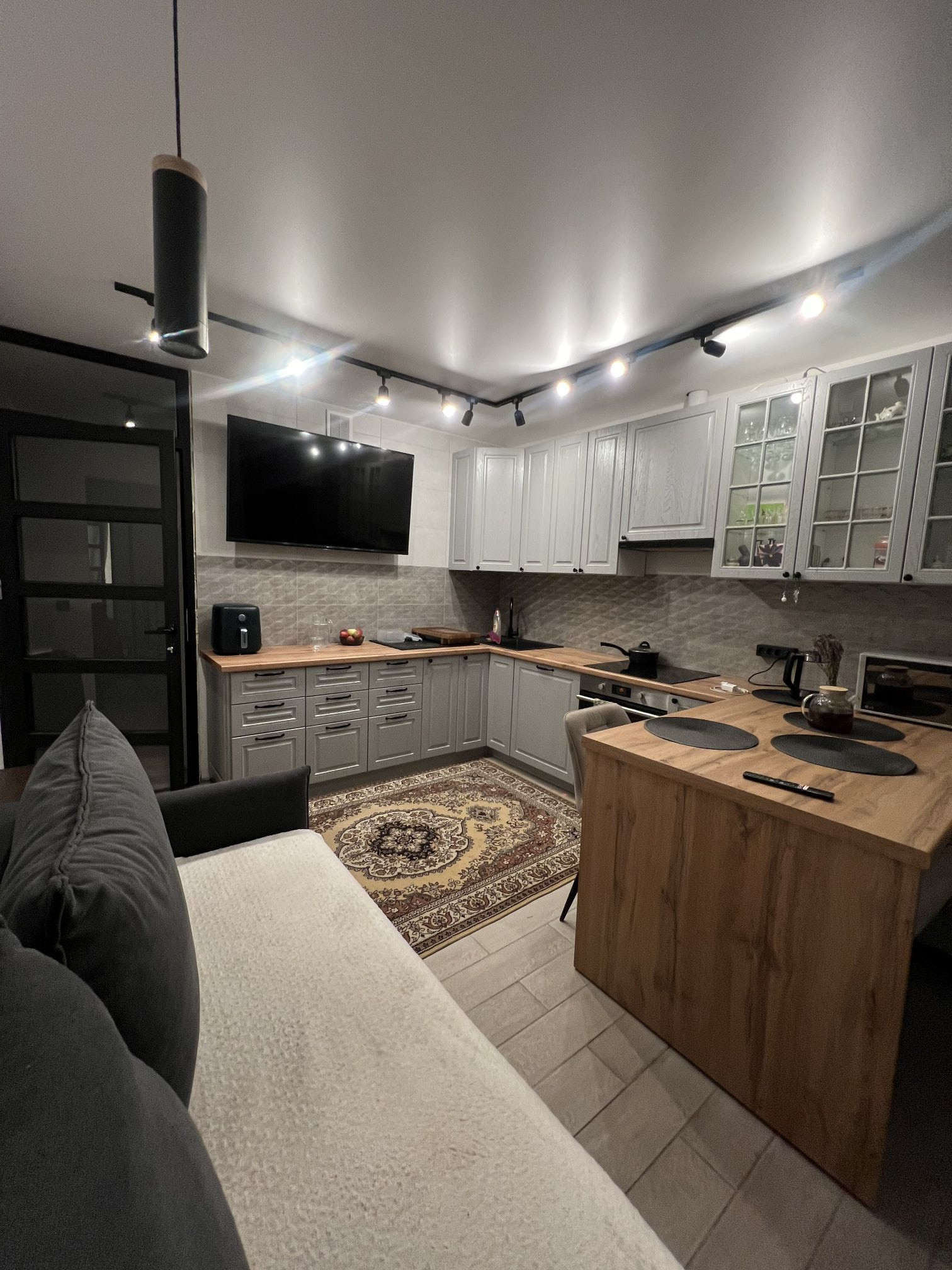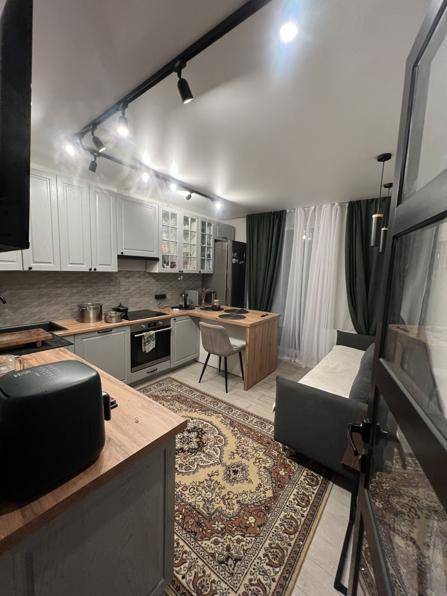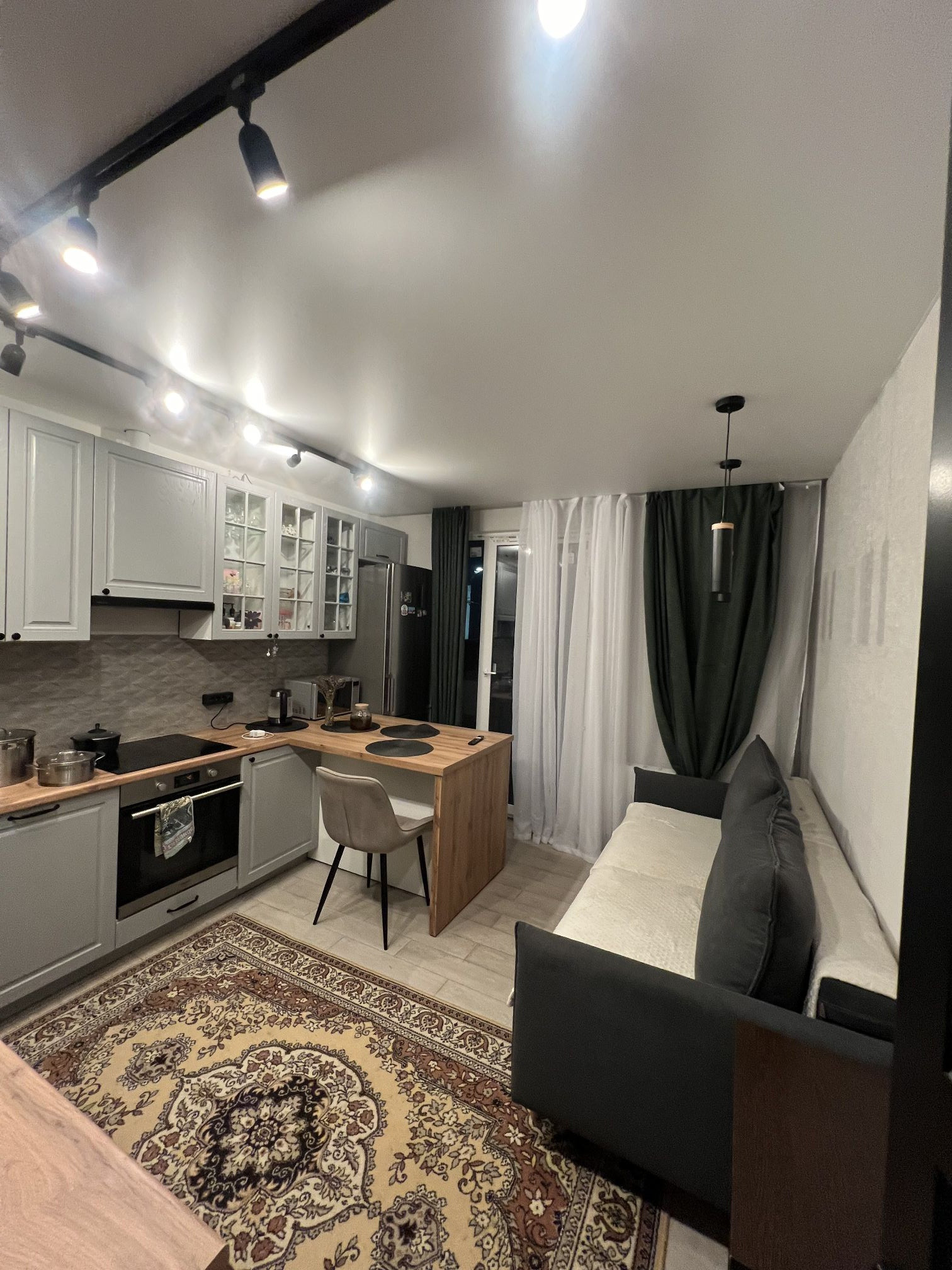 Вокруг дома развитая инфраструктура: рядом находятся школа, детский сад, торговый центр, парк и детская( взрослая) больница. Кухня и мебель ( по договоренности) остаётся.