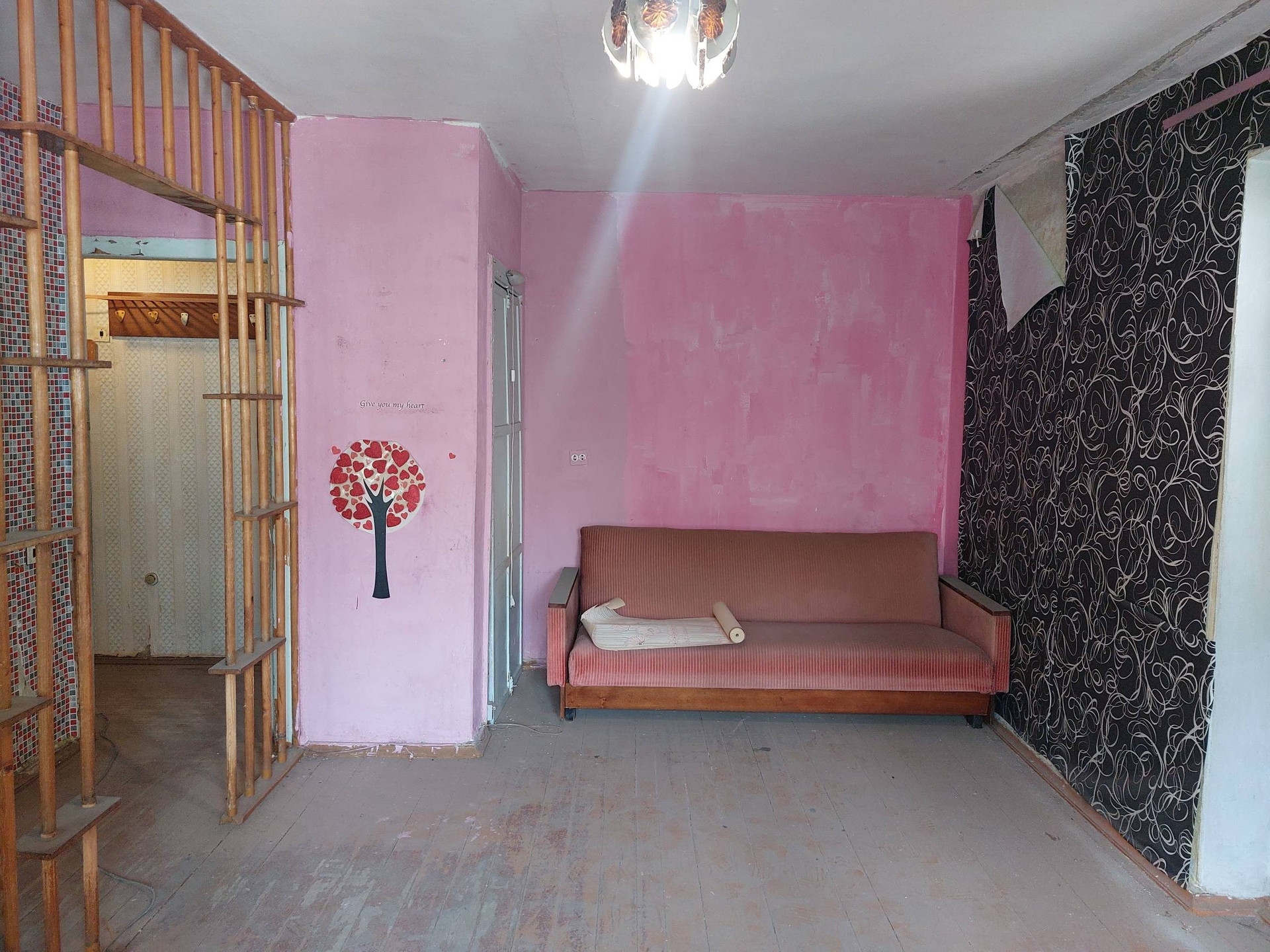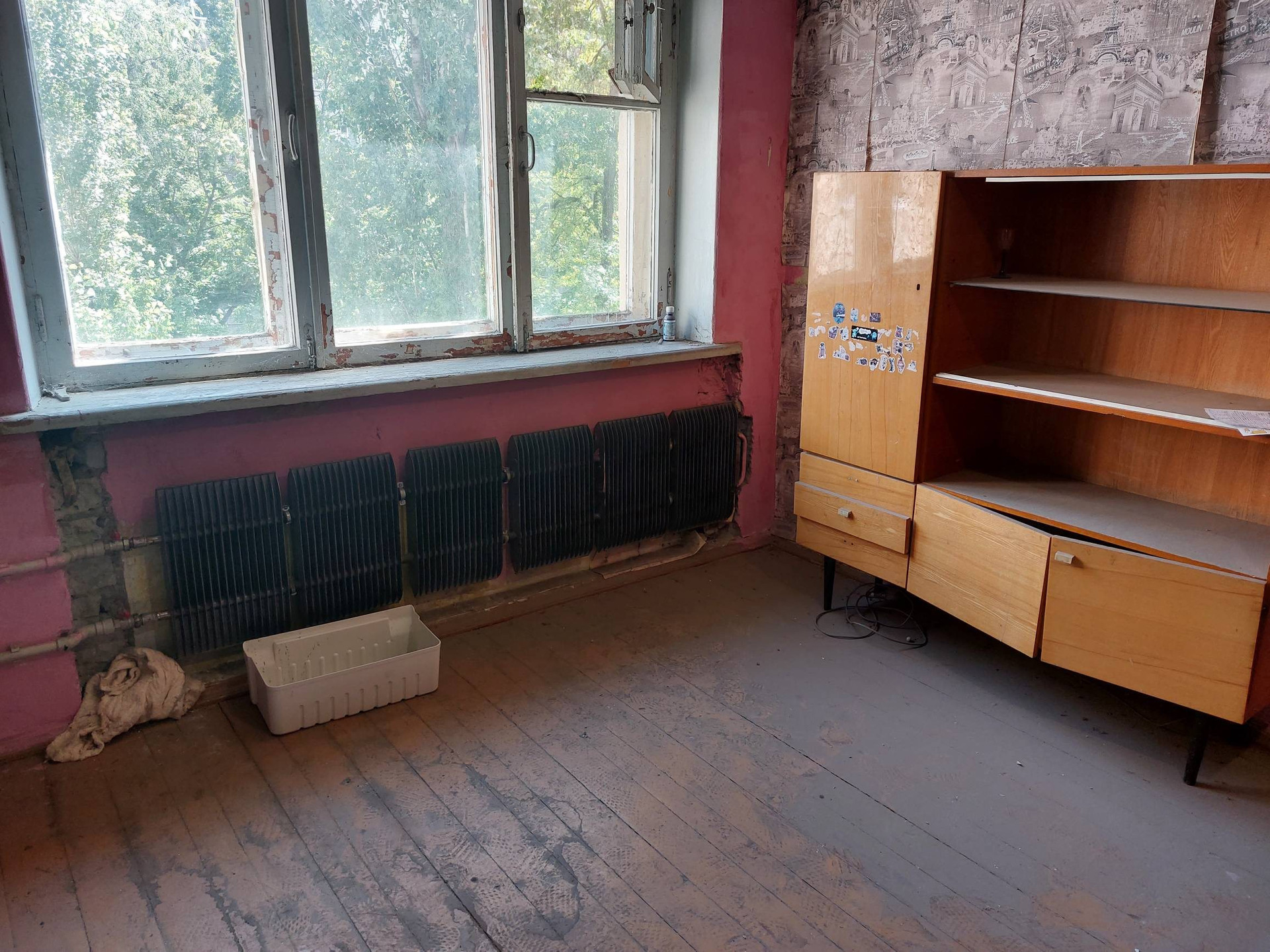 Квартира требует косметического ремонта. В комнате два стояка отопления, санузел совмещенный, в санузле современная плитка, большой полотенцесушитель, входная дверь новая металлическая, на кухне гарнитур, газовая колонка, холодильник, плита всё в рабочем состоянии.