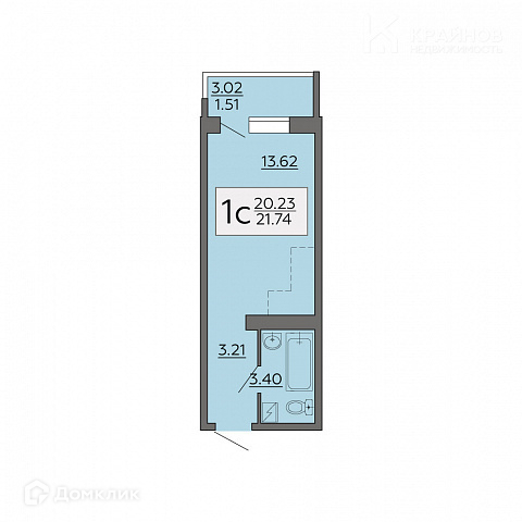 Общая площадь 21.7 м2