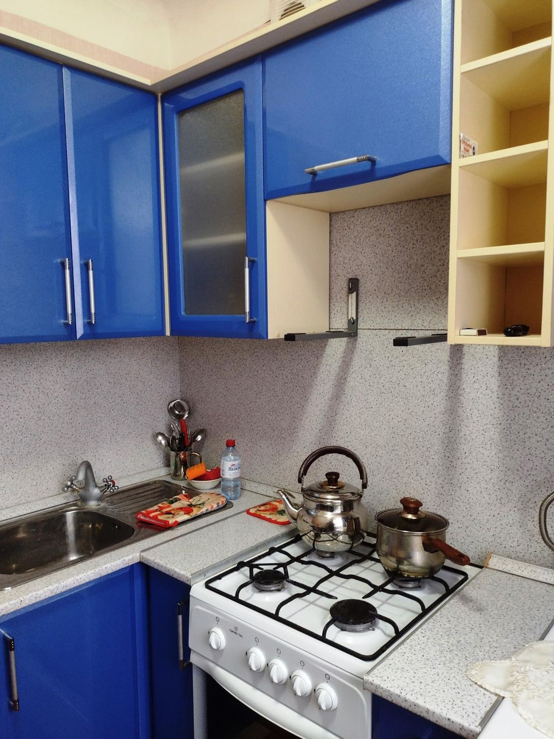 Пластиковые окна, биметаллические батареи, электрика новая, трубы ХВС пластик, газовая колонка;