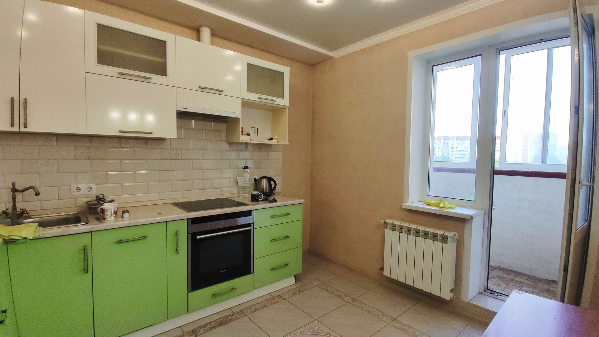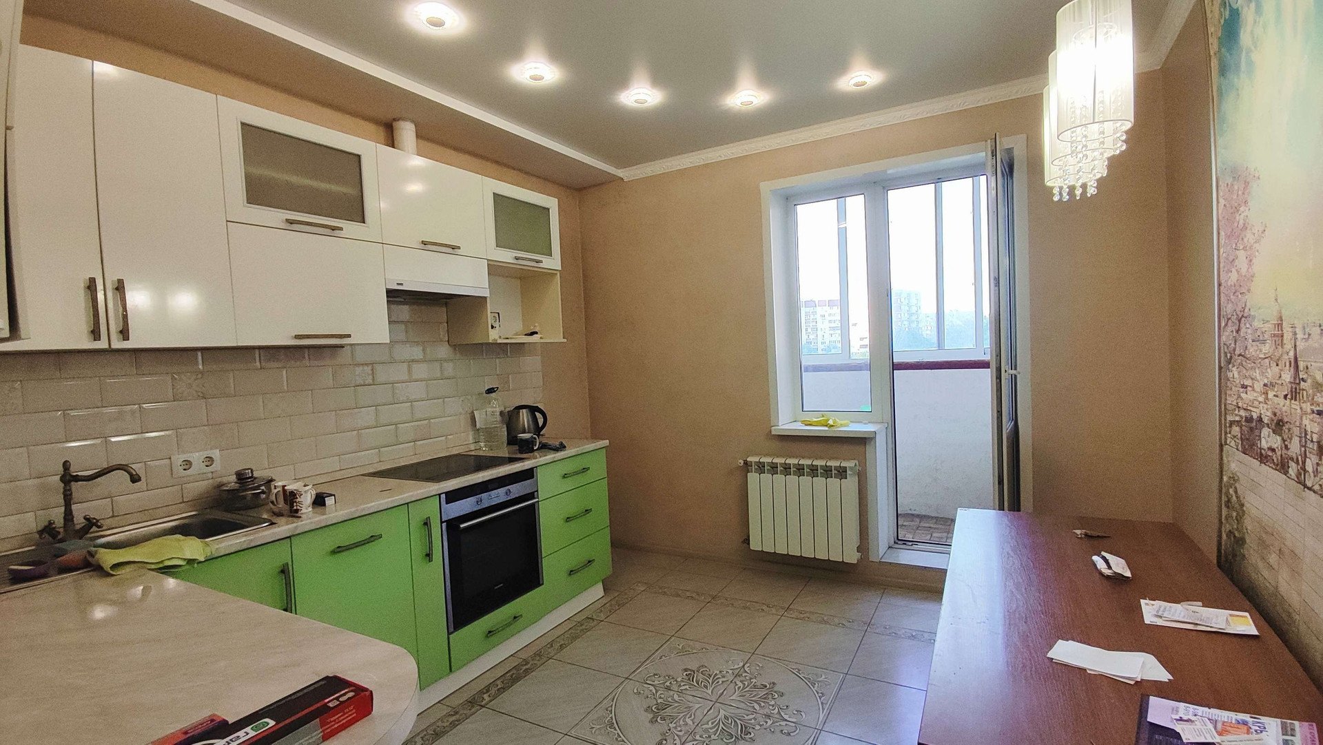 Просторная кухня 11,5 кв м с выходом на балкон.