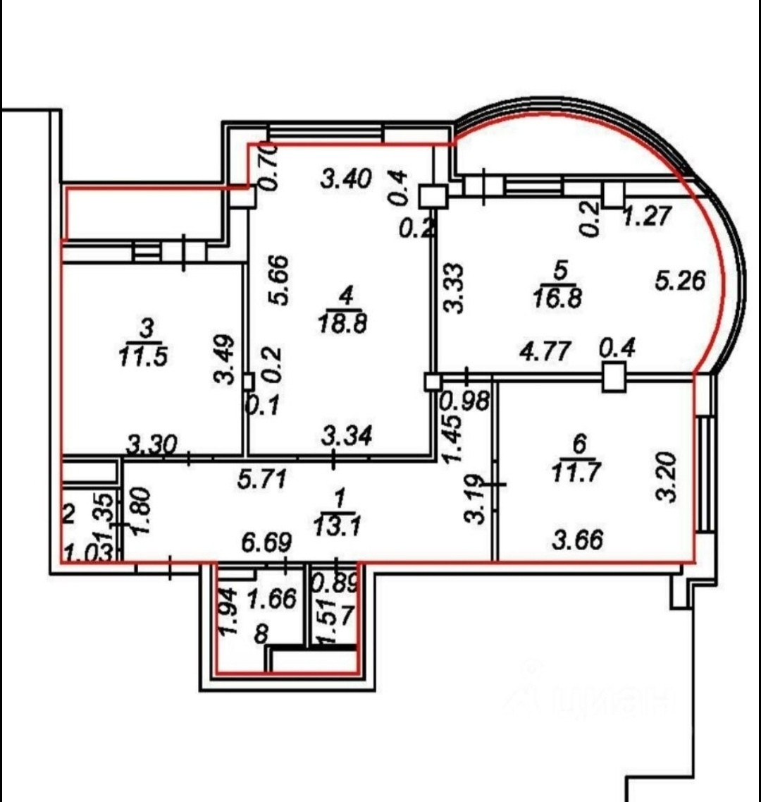 Квартира изолированной планировки. Комнаты (План в галерее фото) 18,8 + 16,8 +11, 7 кв. м.