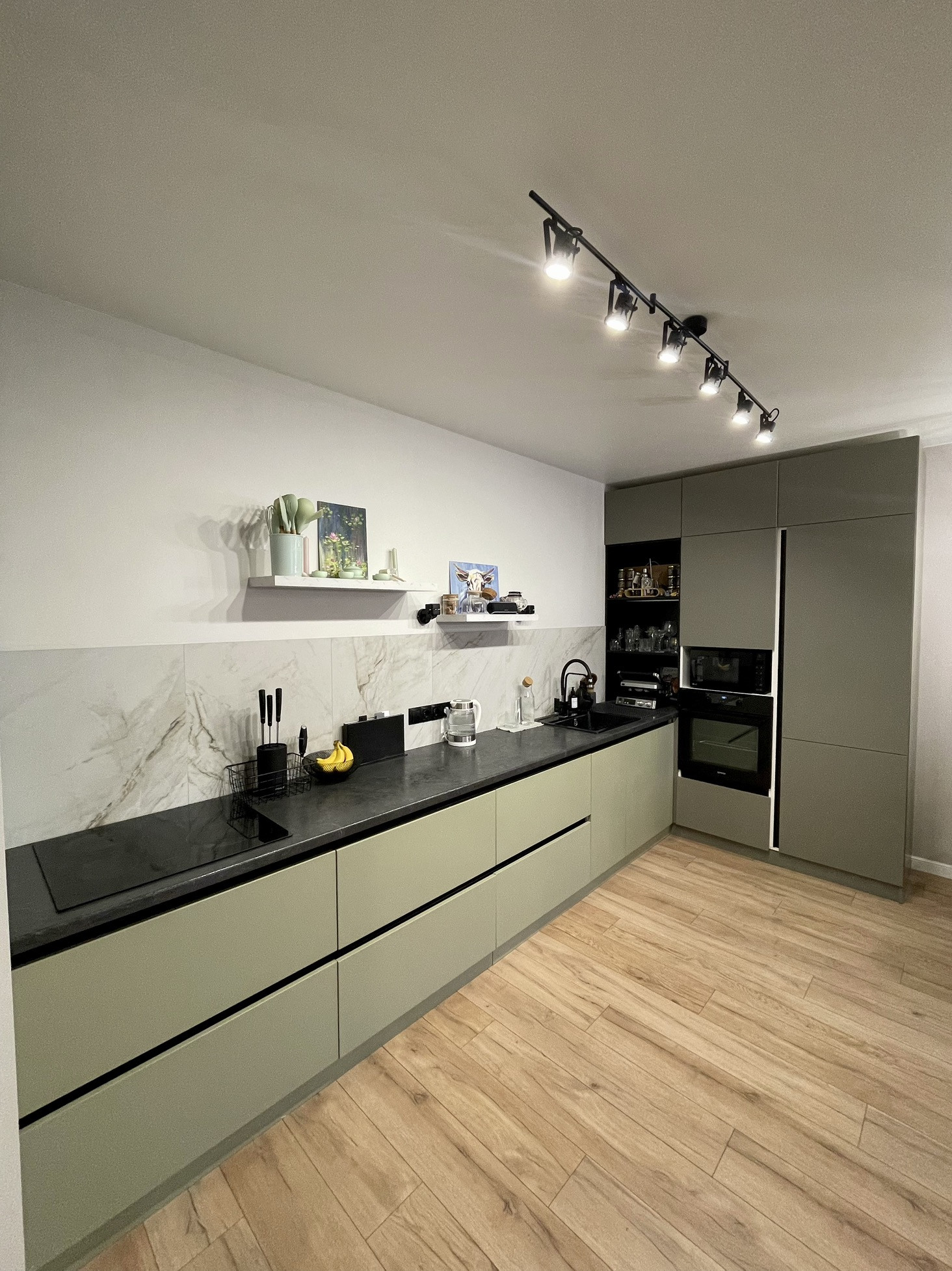 - кухонный гарнитур (крашеные фасады, фурнитура Hettich)