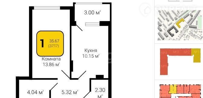 1-комнатная квартира, 35.9 м2, этаж 2 / 15, на продажу в Воронеже, улица 121-й Стрелковой Дивизии, 9