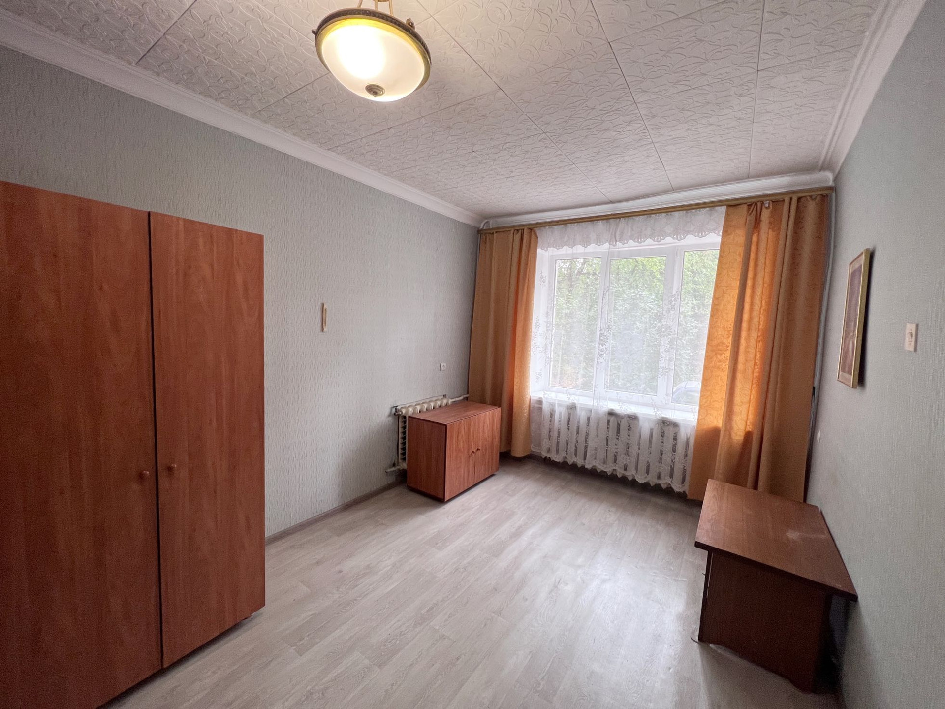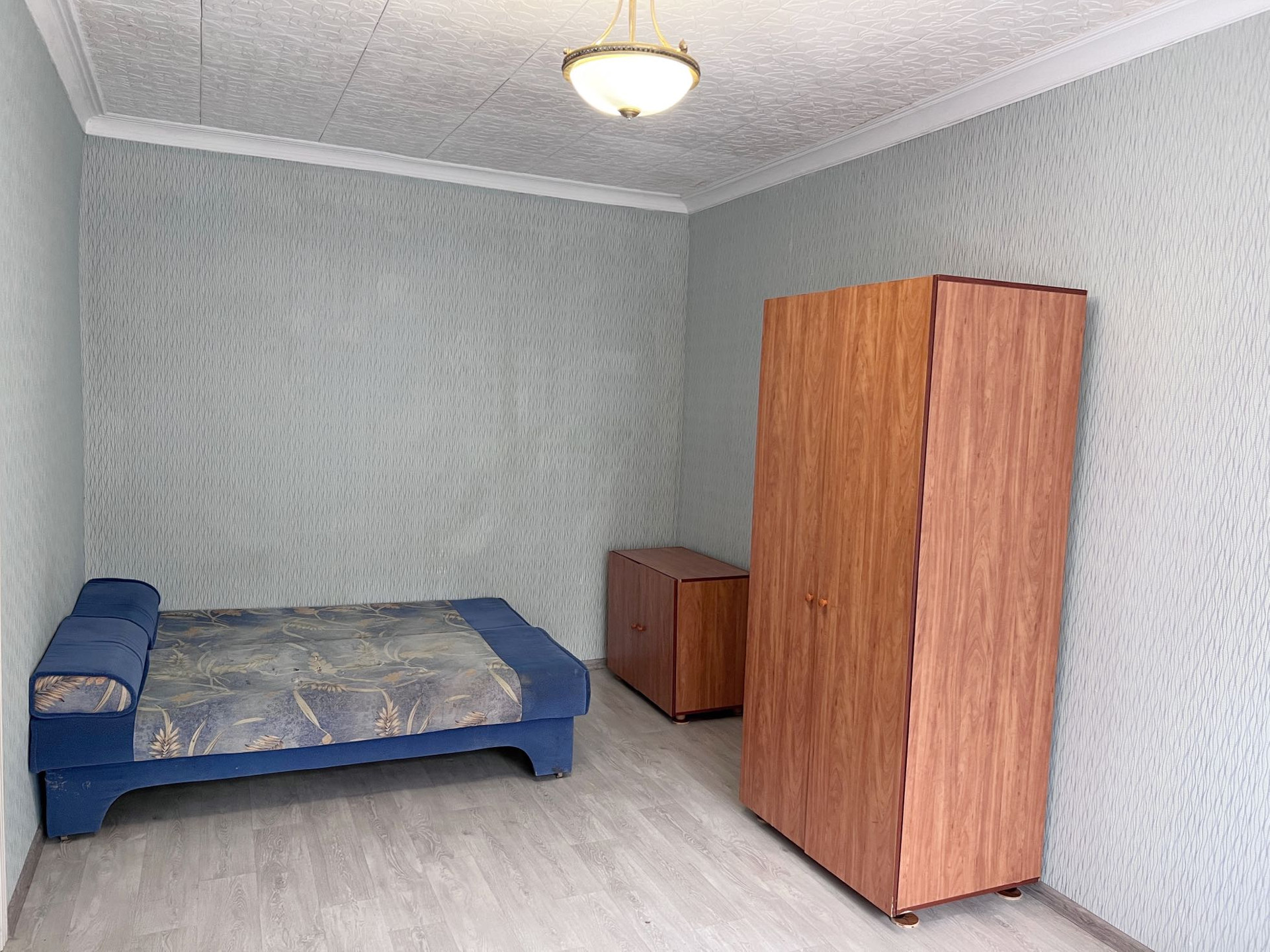 - стены: поклеены обои;