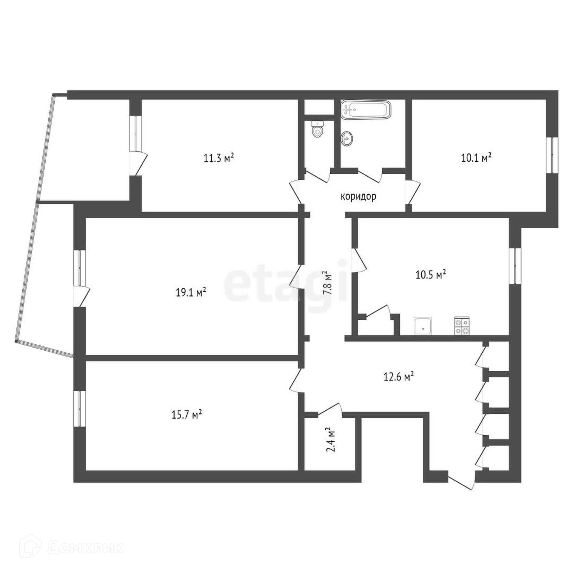 4-комнатная квартира, 95.1 м2, этаж 7 / 9, на продажу в Воронеже, Средне-Московская улица, 7