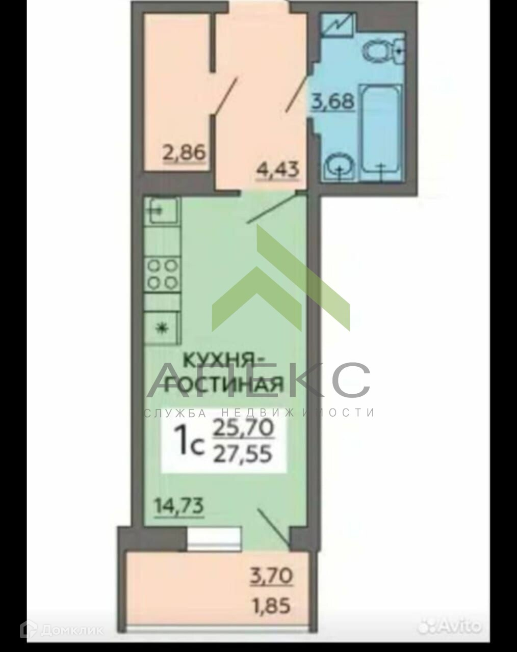 Общая площадь 27.55 м2