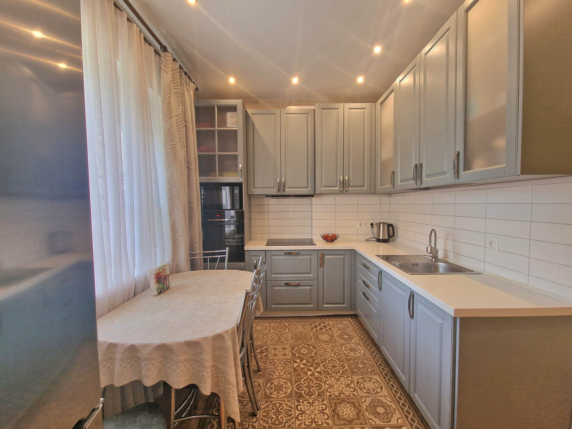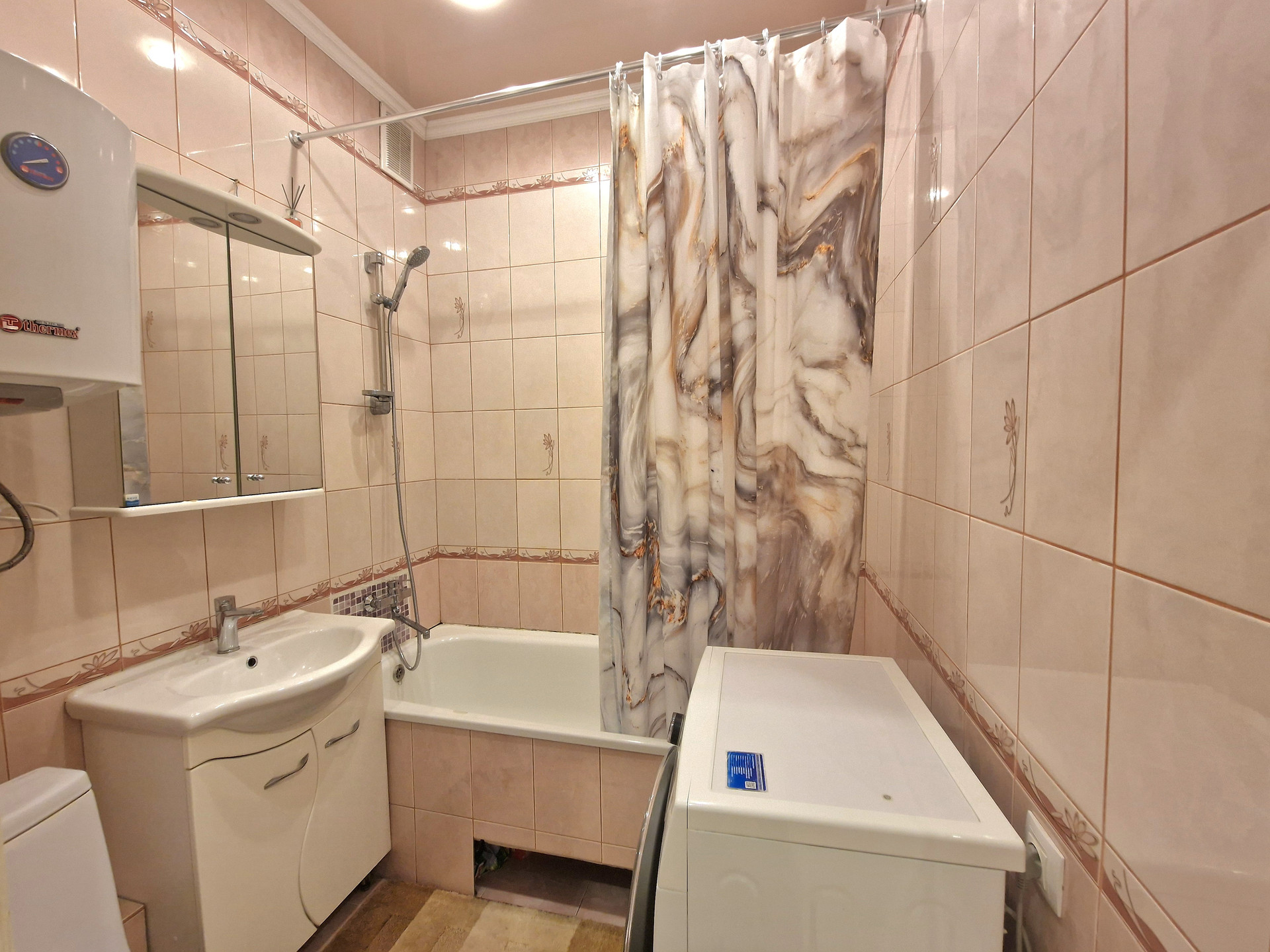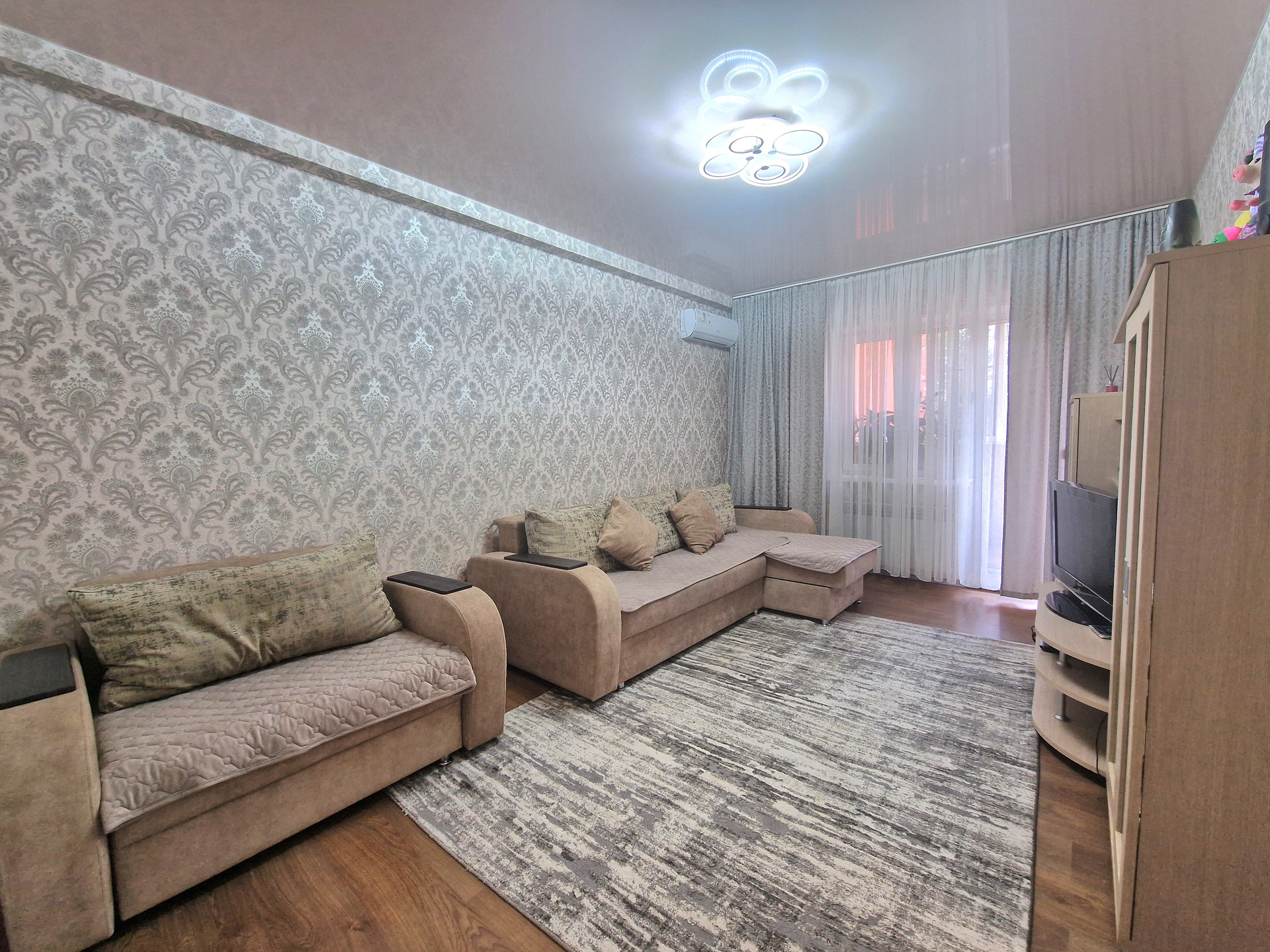 В квартире выполнена отделка. Установлены мебель и бытовая техника: встроенная кухня, электрическая варочная панель BOSH, электрический духовой шкаф BOSH, вытяжка KRONA, микроволновая печь, столовая группа, телевизор на кухне, стиральная машина SAMSUNG, водонагреватель, шкаф-купе в прихожей, набор мебели «прихожая», два дивана, стенка, кондиционер KENTATSU. Состояние квартиры «заезжай и живи». Фотографии соответствуют.