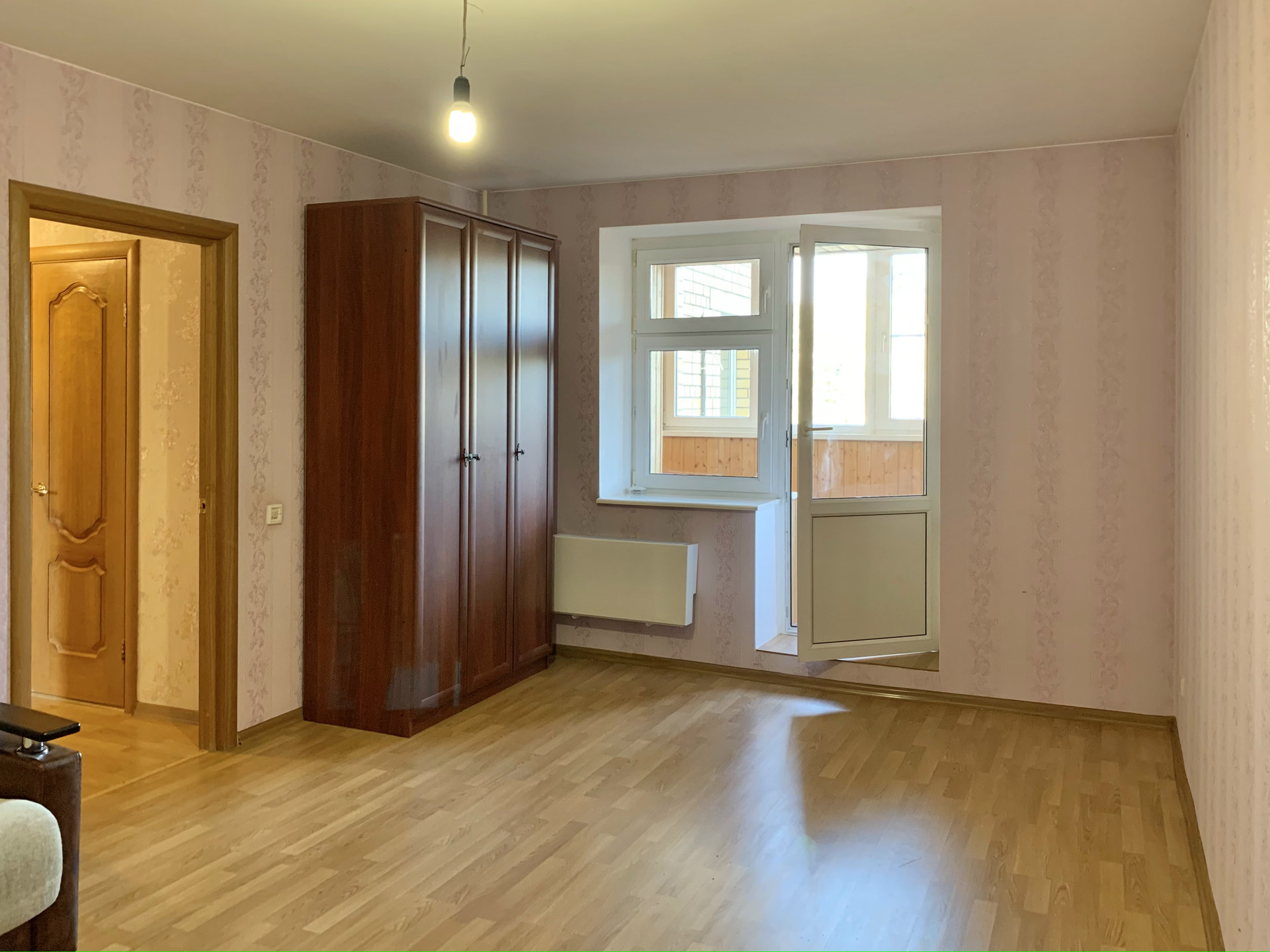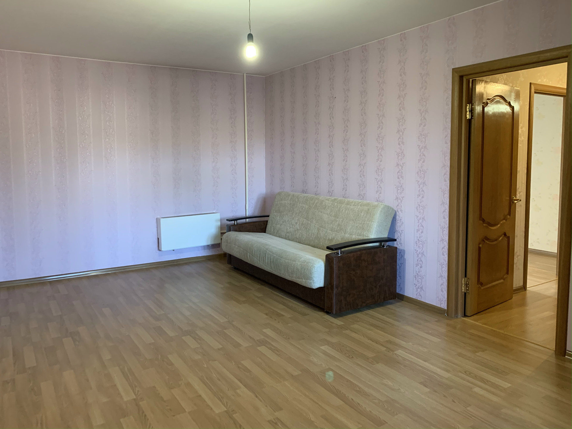 В квартире остается мебель диван, шкаф в прихожей, встроенные шкафы на лоджиях.