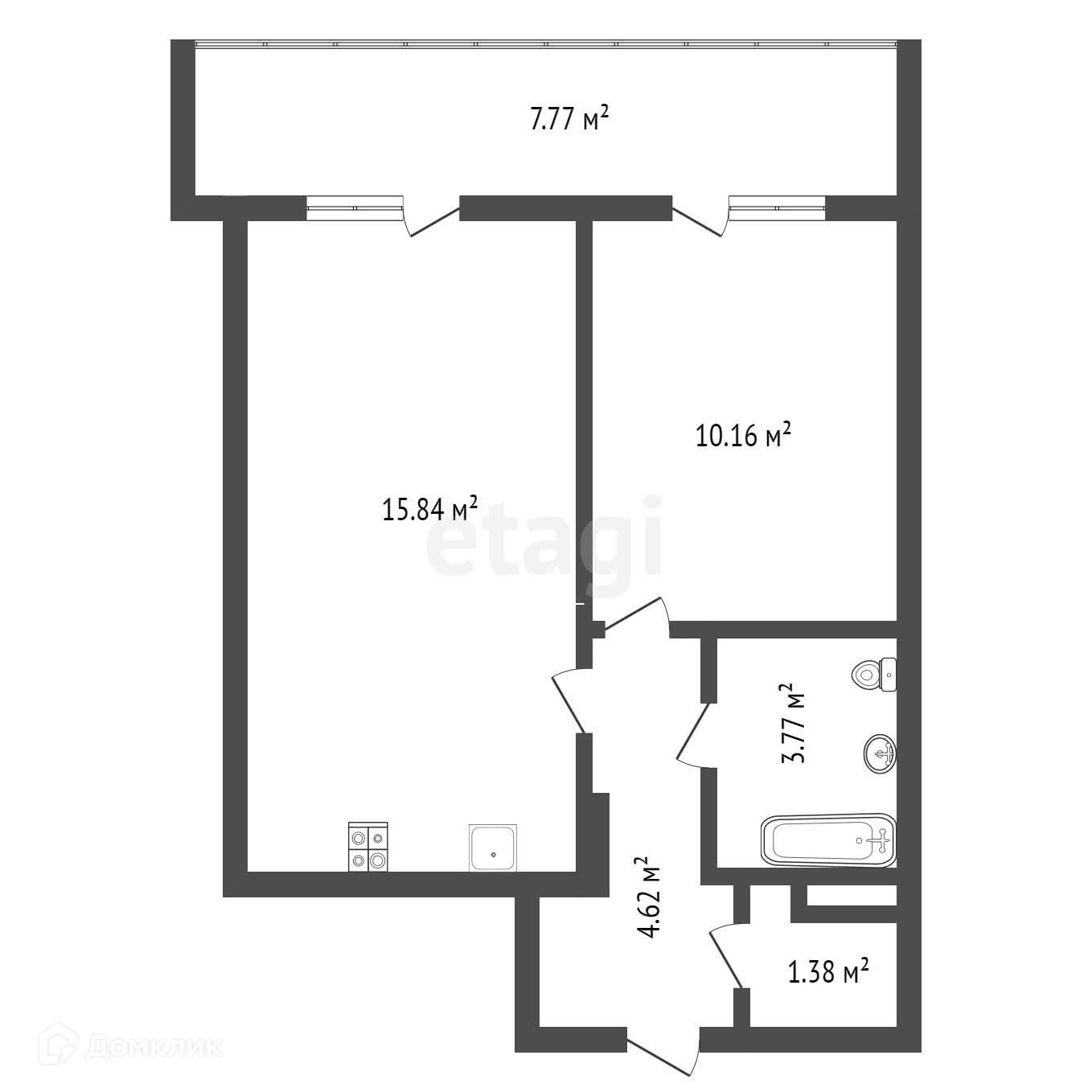 Площадь кухни 15.84 м2