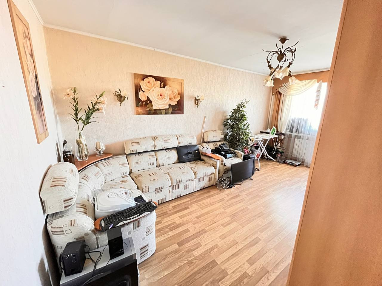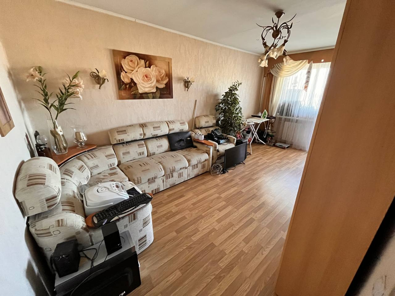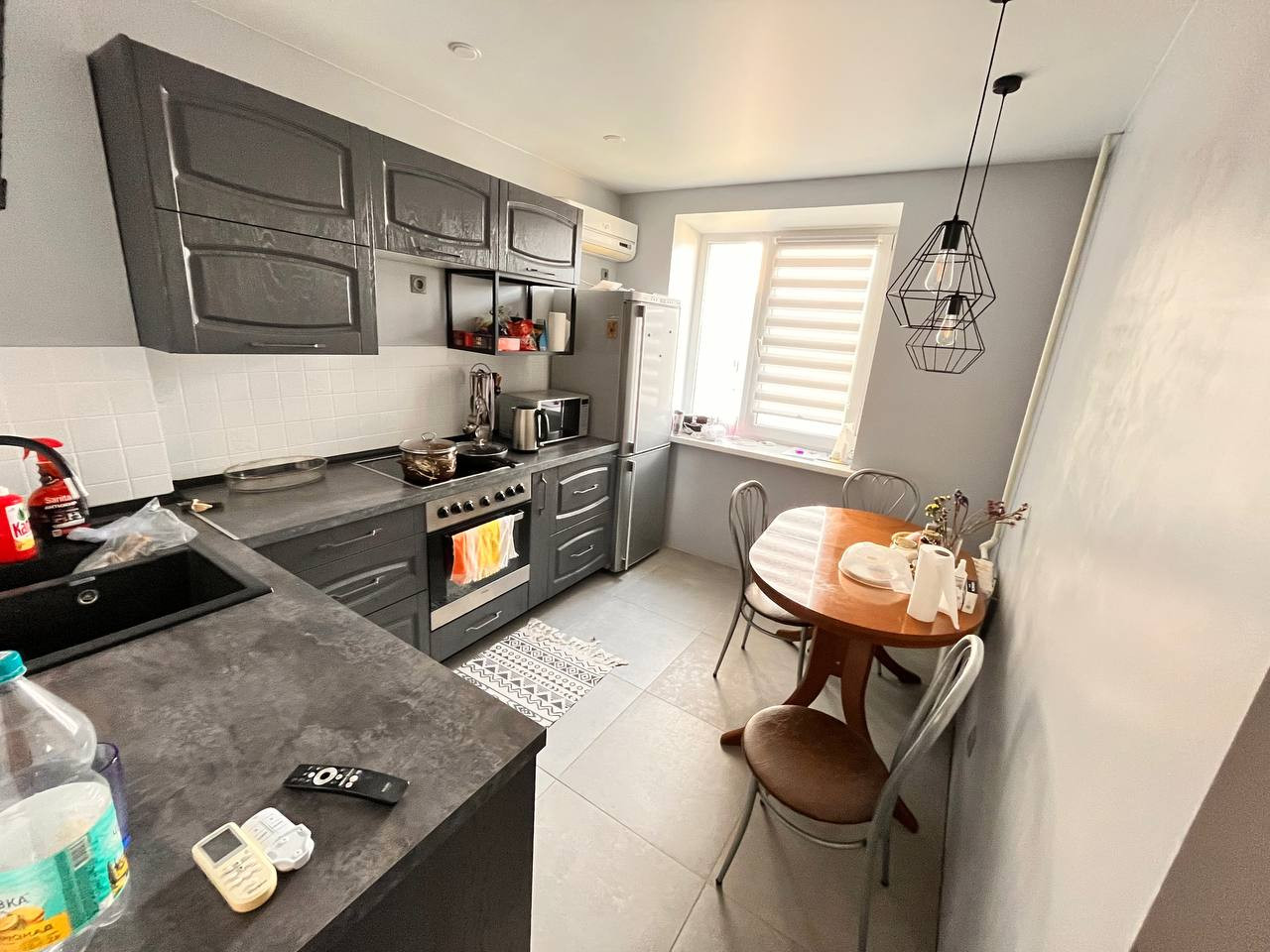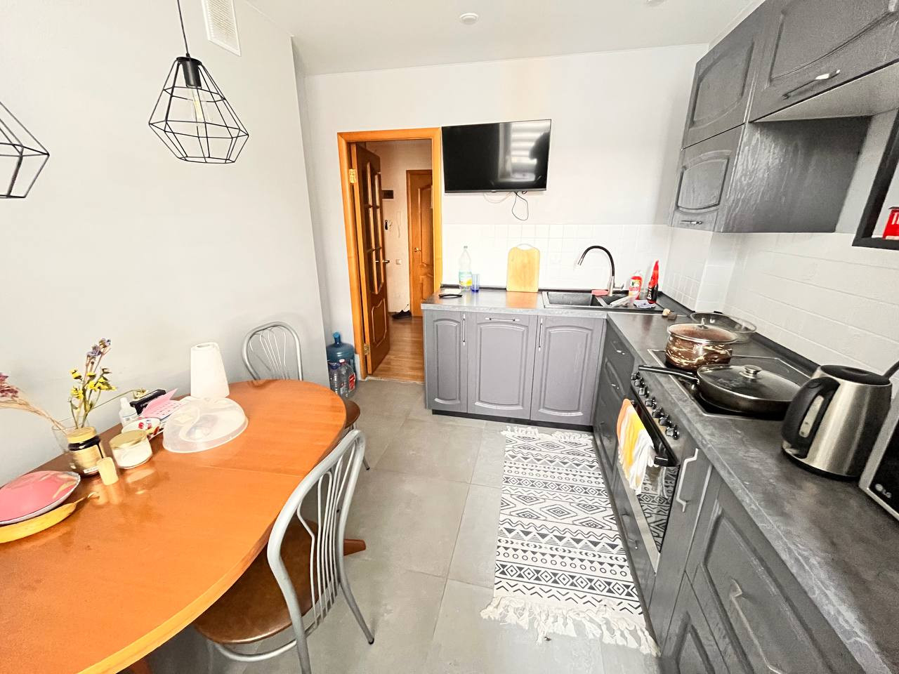 В квартире сделан свежий ремонт. Новый кухонный гарнитур, натяжные потолки, санузел в кафельной плитке, заменены все коммуникации.