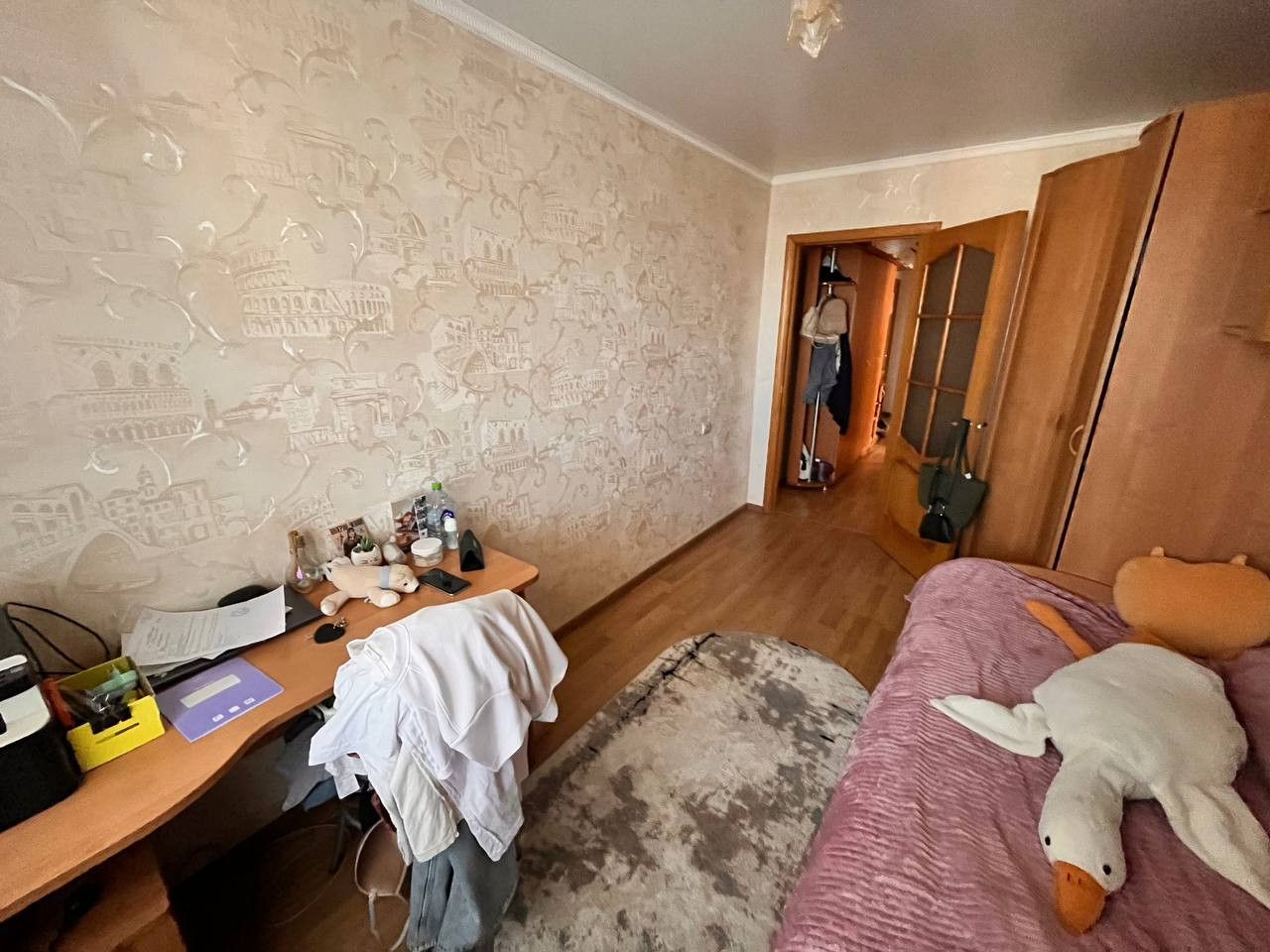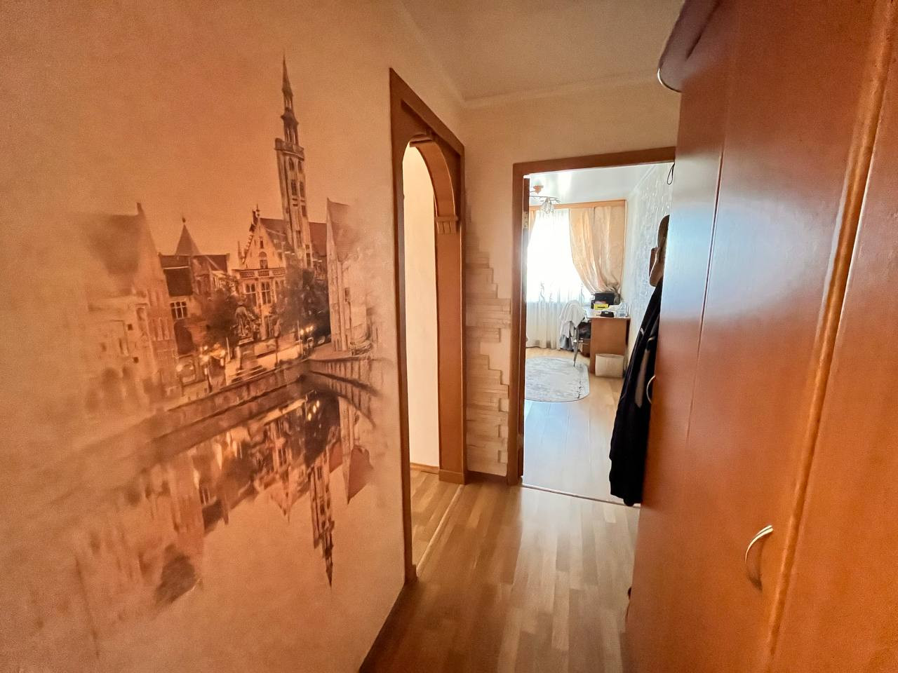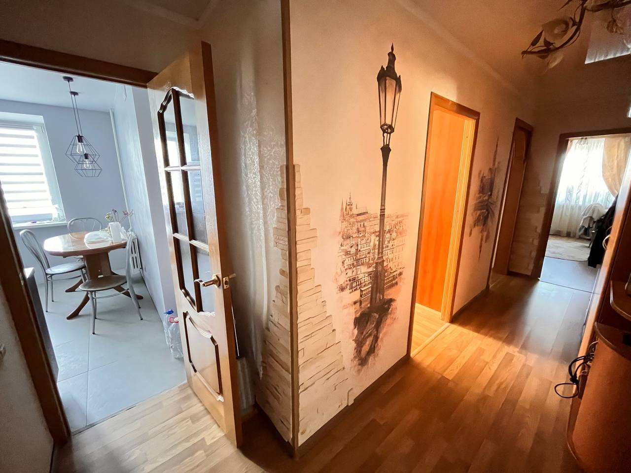 Три изолированных комнаты отделены от санузла с кухней коридором.
