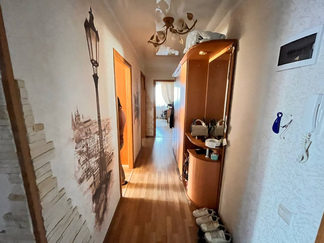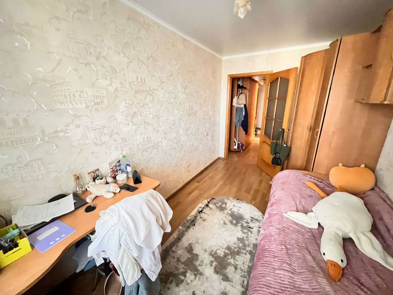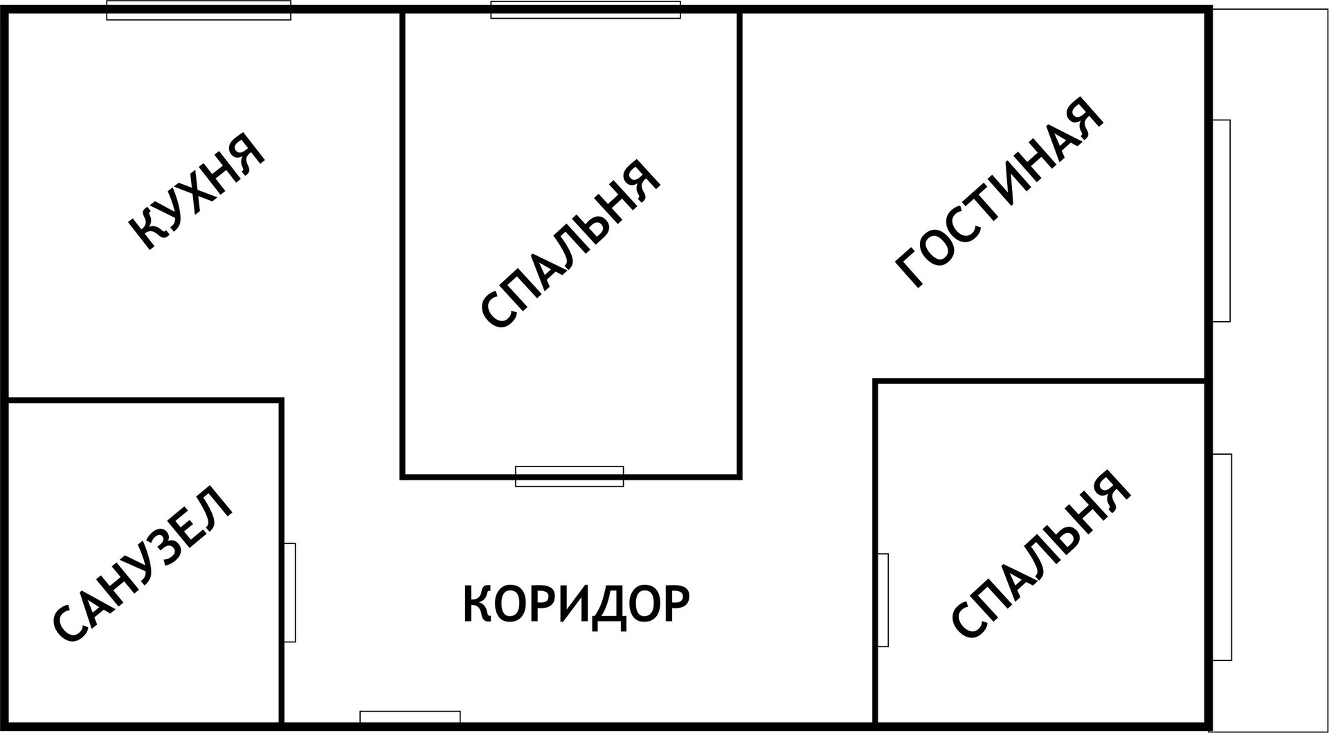 Три изолированных комнаты отделены от санузла с кухней коридором.