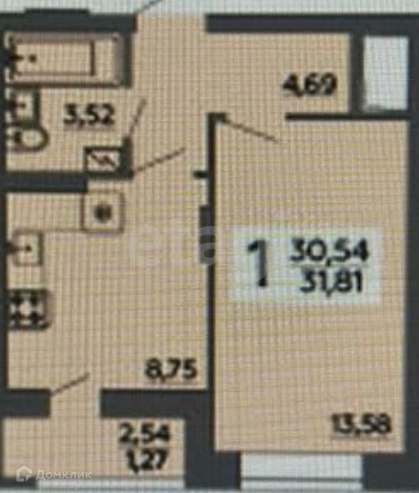 Общая площадь 31.81 м2
