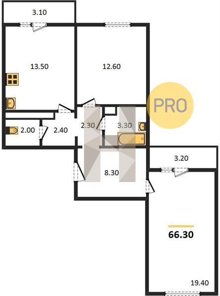 Общая площадь 63.8 м2