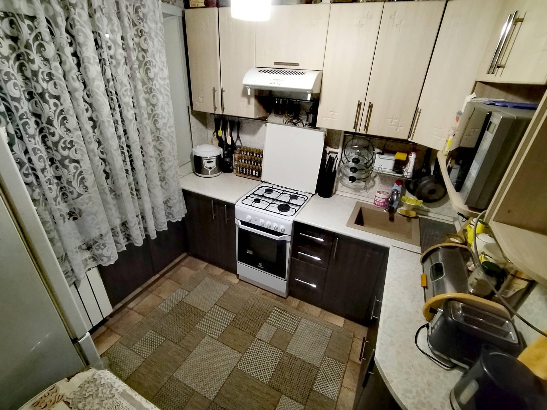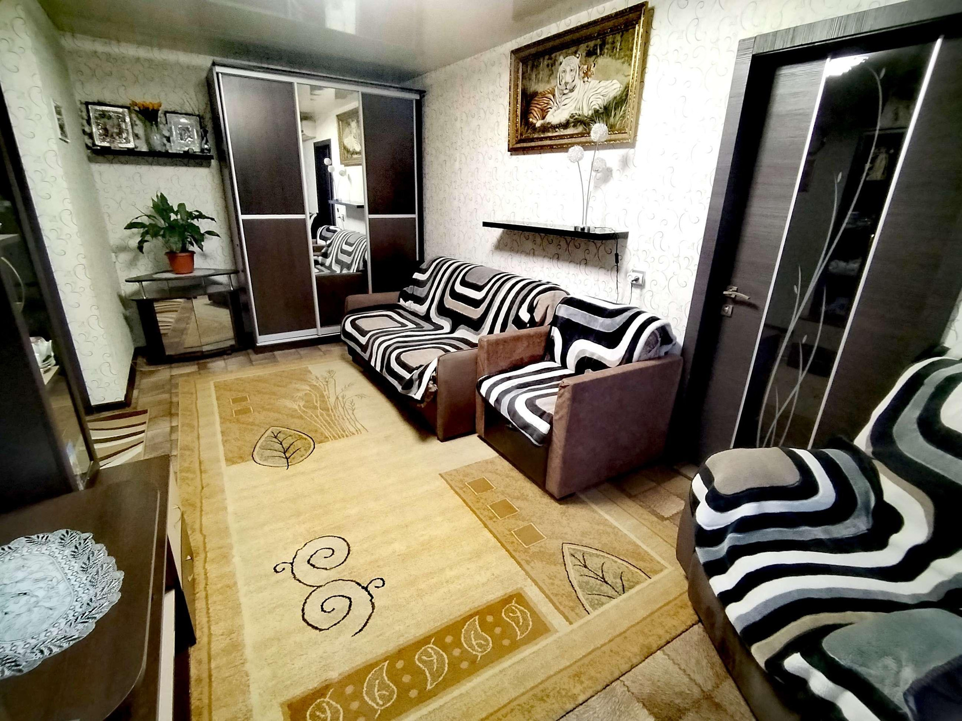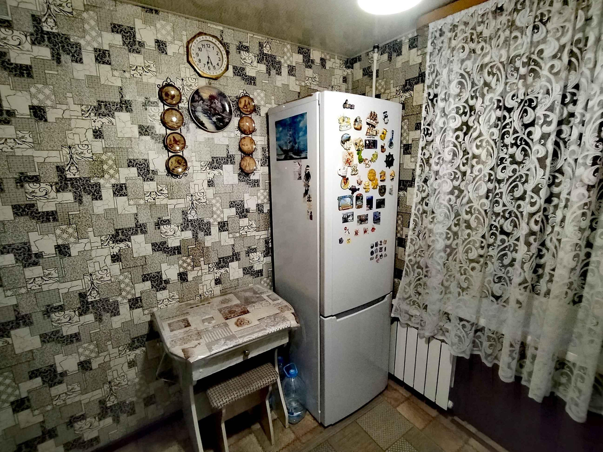 Пластиковые  окна,линолеум, кондиционер,новые пластиковые трубы и радиаторы биметалл,новые межкомнатные и входная дверь. В комнатах стены выровнены гипсокартоном,санузел выложен плиткой,в нише на кухне установлен шкаф под зимний холодильник в тонах кухни. Тихие и дружелюбные соседи.