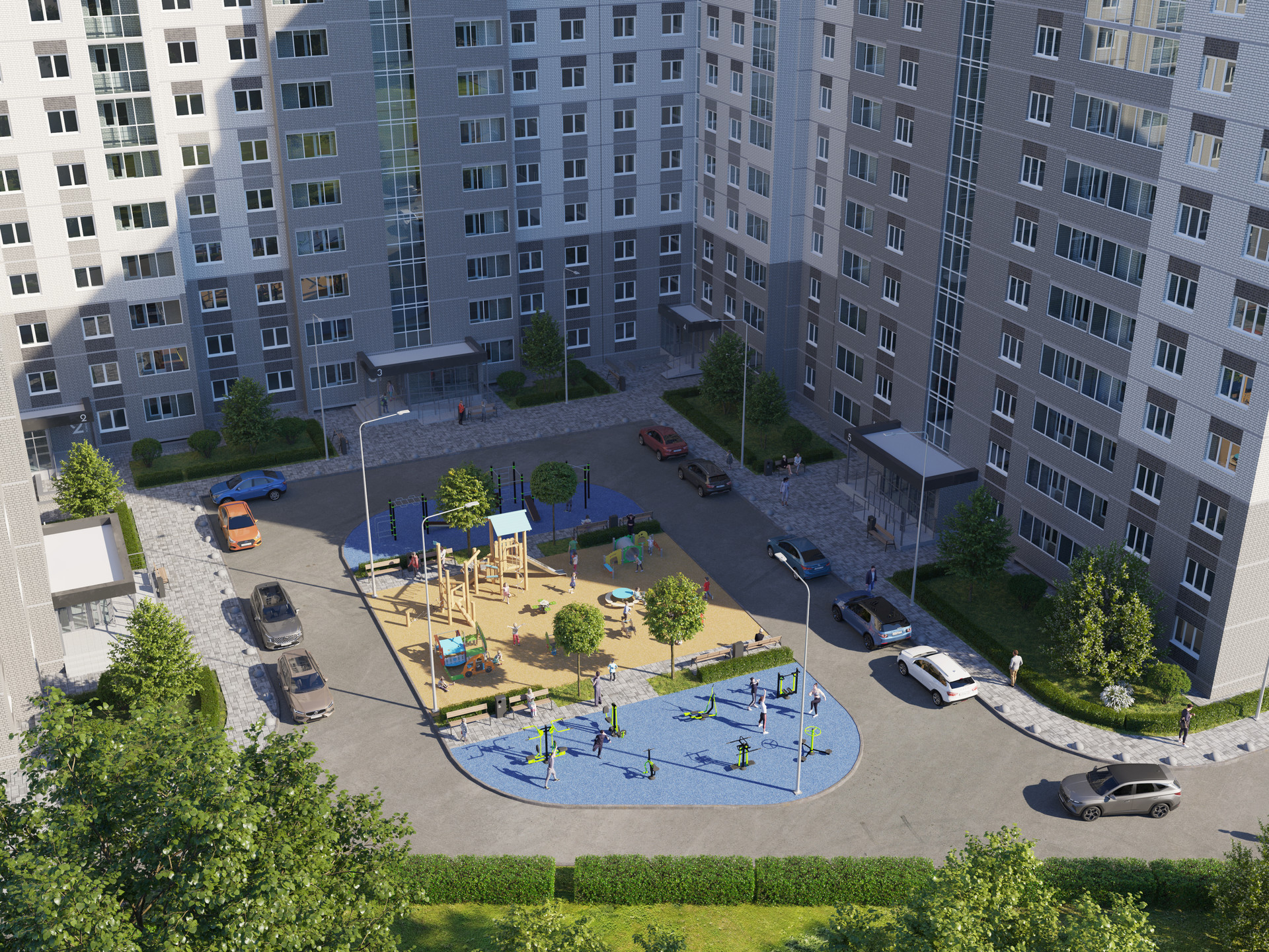 Комплекс расположен в удалении от промышленных объектов и непосредственной близости от реки Дон и оз. Круглое. Благоустроенная территория с современными детскими и спортивными площадками. До ул. Антонова-Овсеенко 2 минуты.