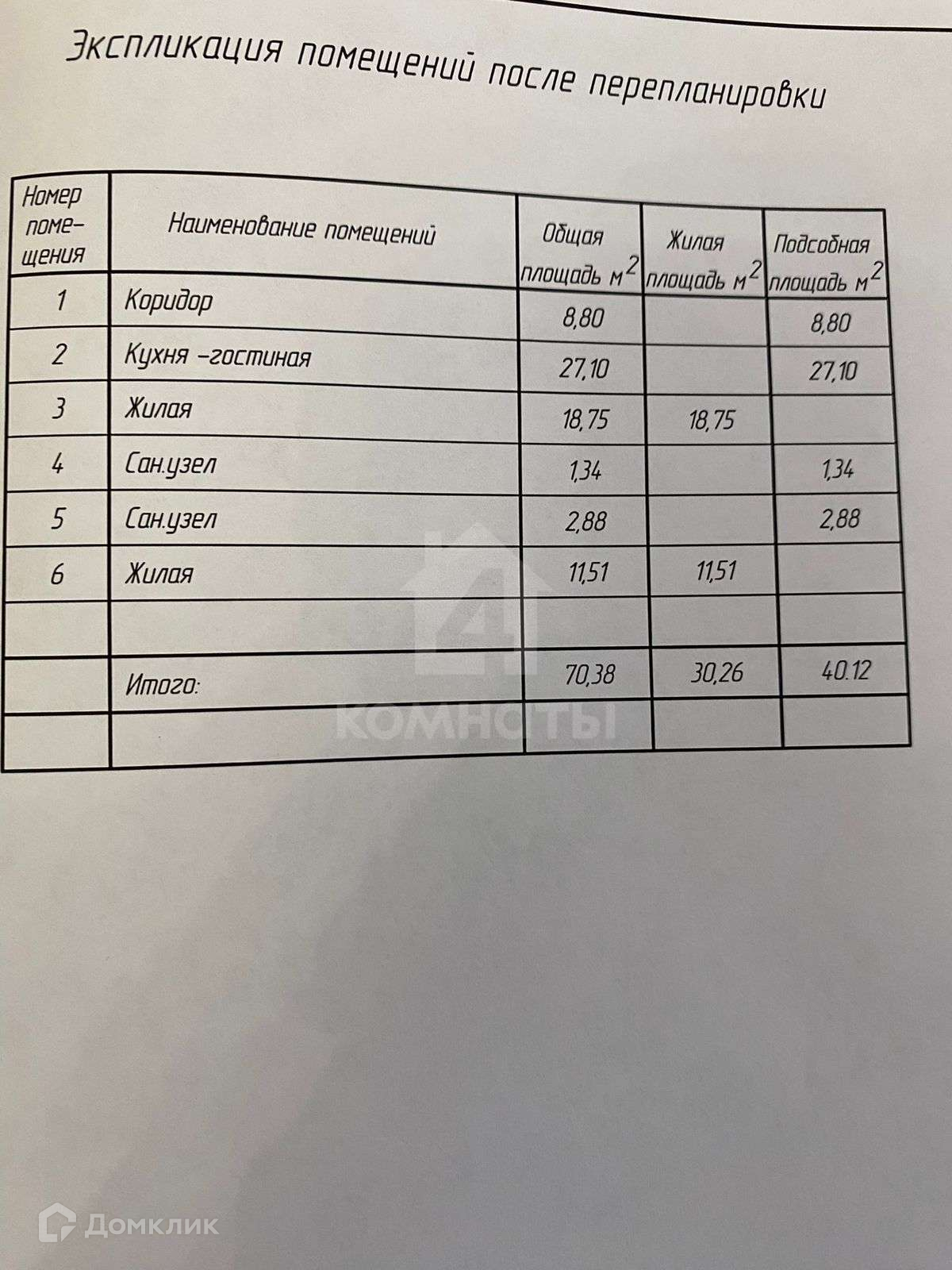 Жилая площадь 30.26 м2