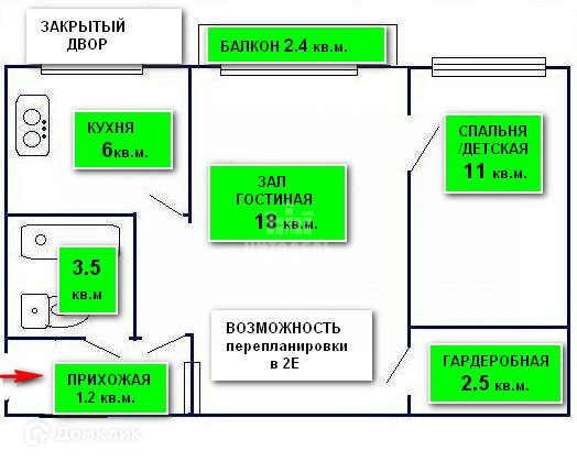 Площадь кухни 6 м2