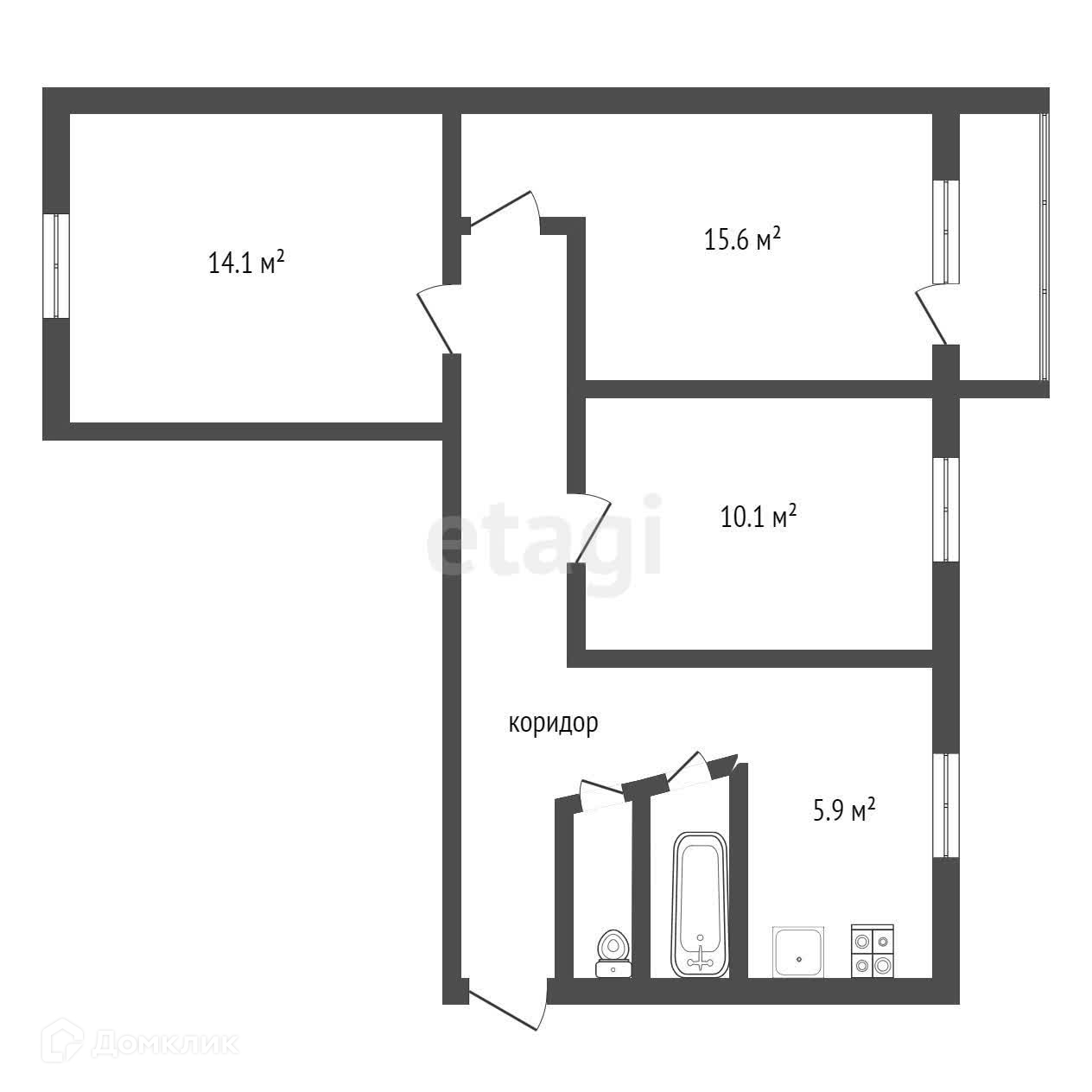 3-комнатная квартира, 60 м2, этаж 3 / 5, на продажу в Воронеже, улица Героев Сибиряков, 105